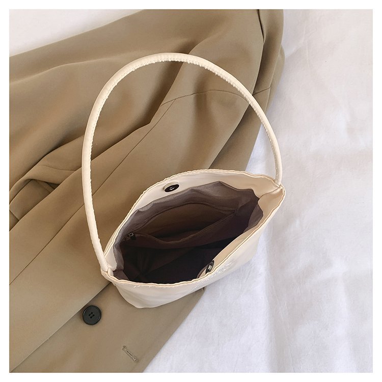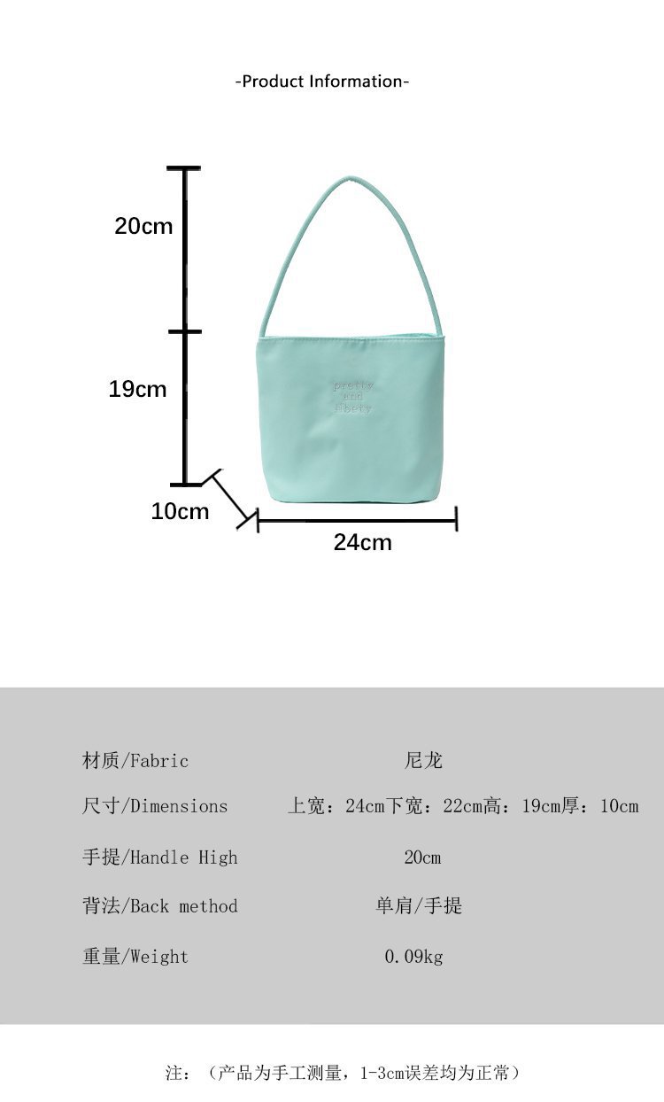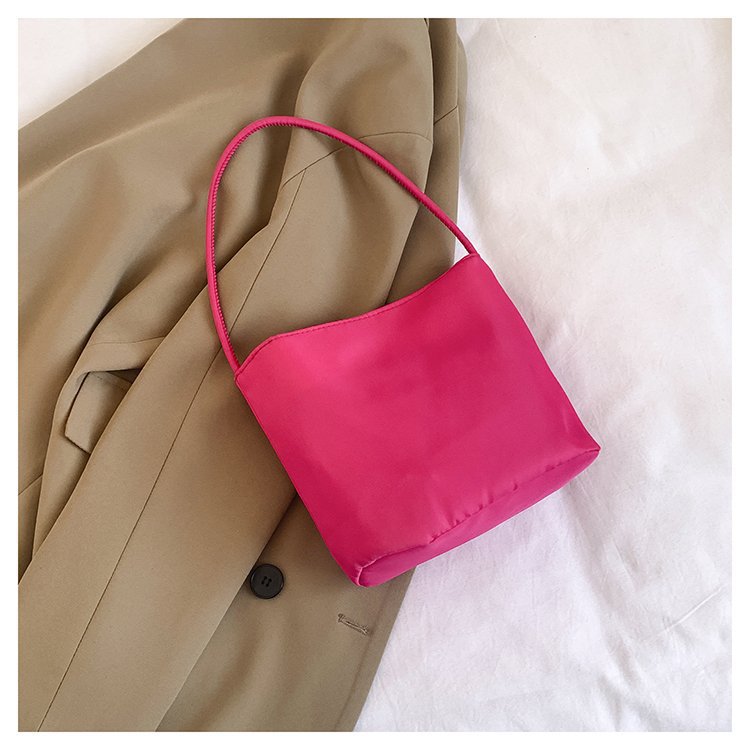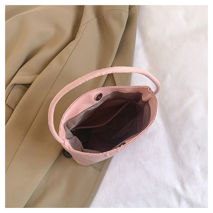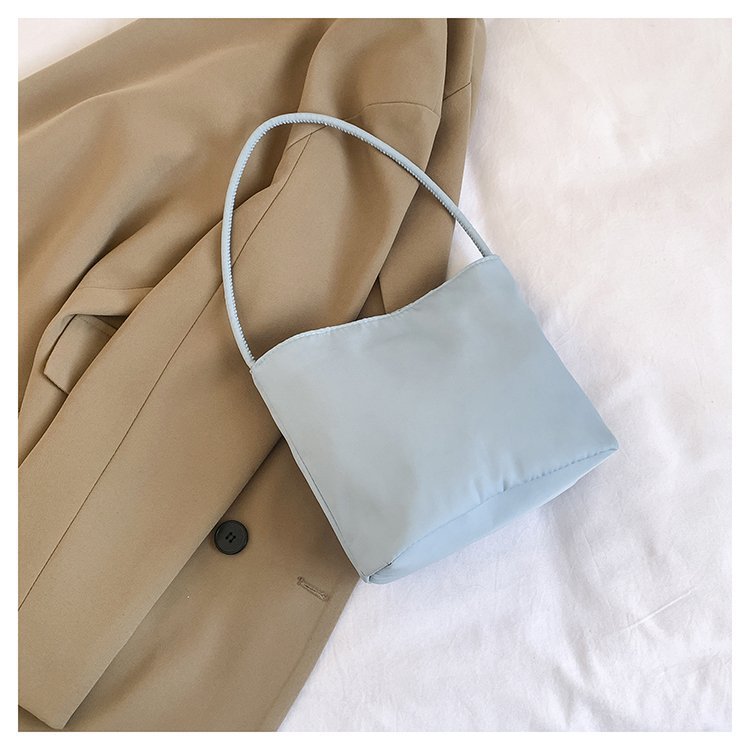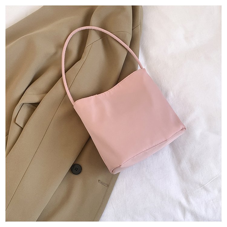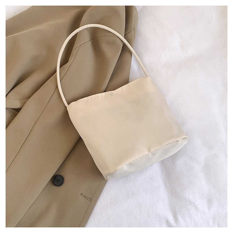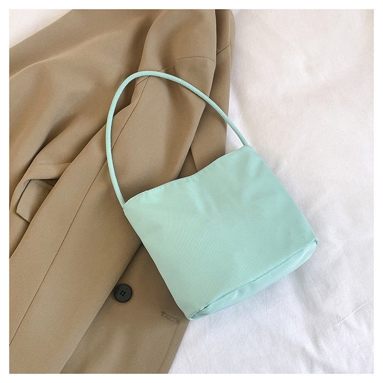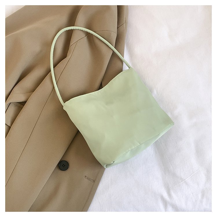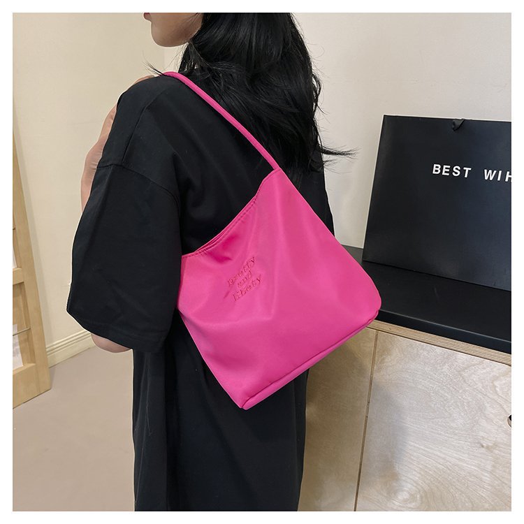 2024 musim panas baru sederhana nilon tas ketiak Korea Selatan desain ceruk huruf bordir portabel tas bucket komuter
