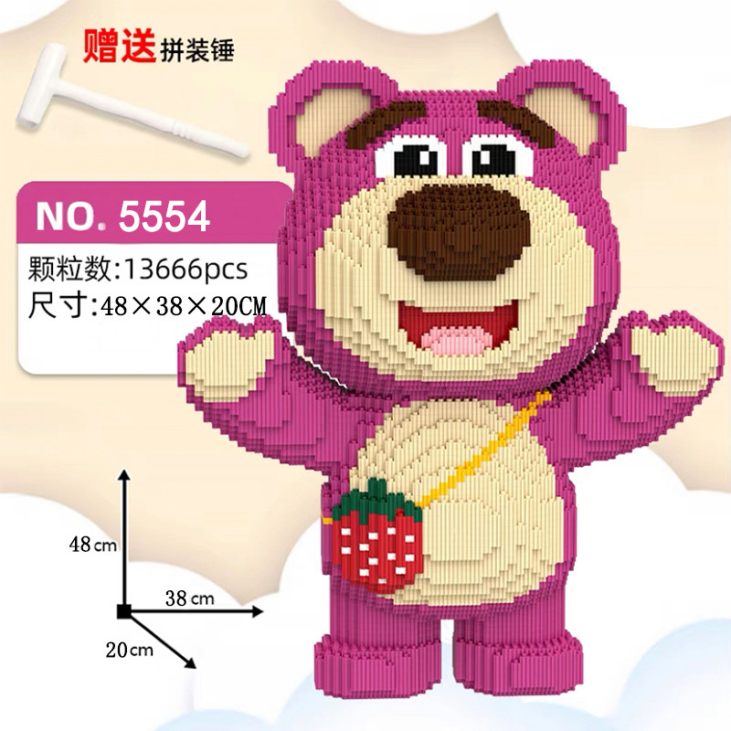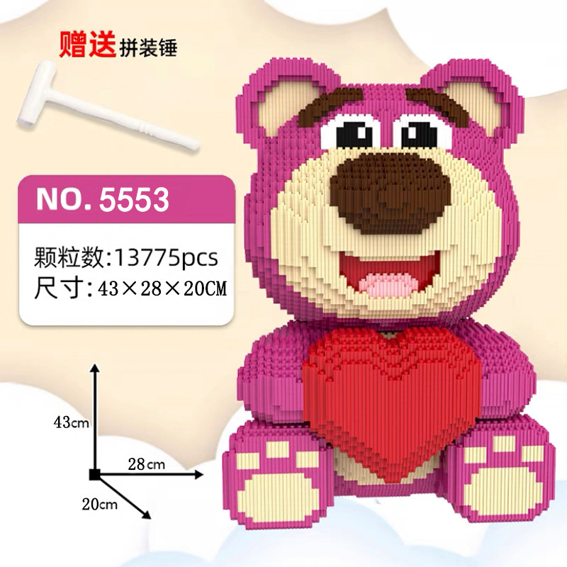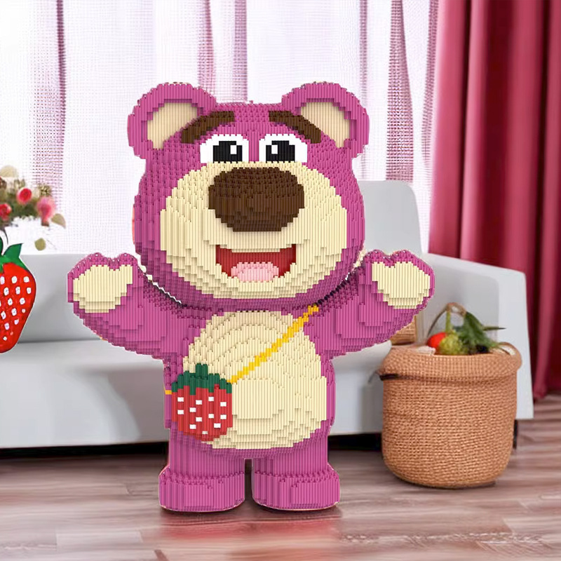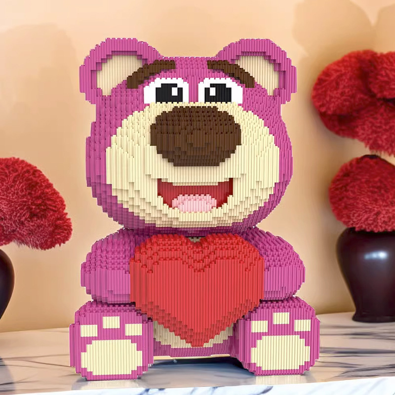 Strawberry Blok Beruang Kompatibel dengan Lego Mainan Dekorasi Lucu Teka-teki Rakitan Beruang Kekerasan Blok Bangunan Mainan Hadiah Hewan