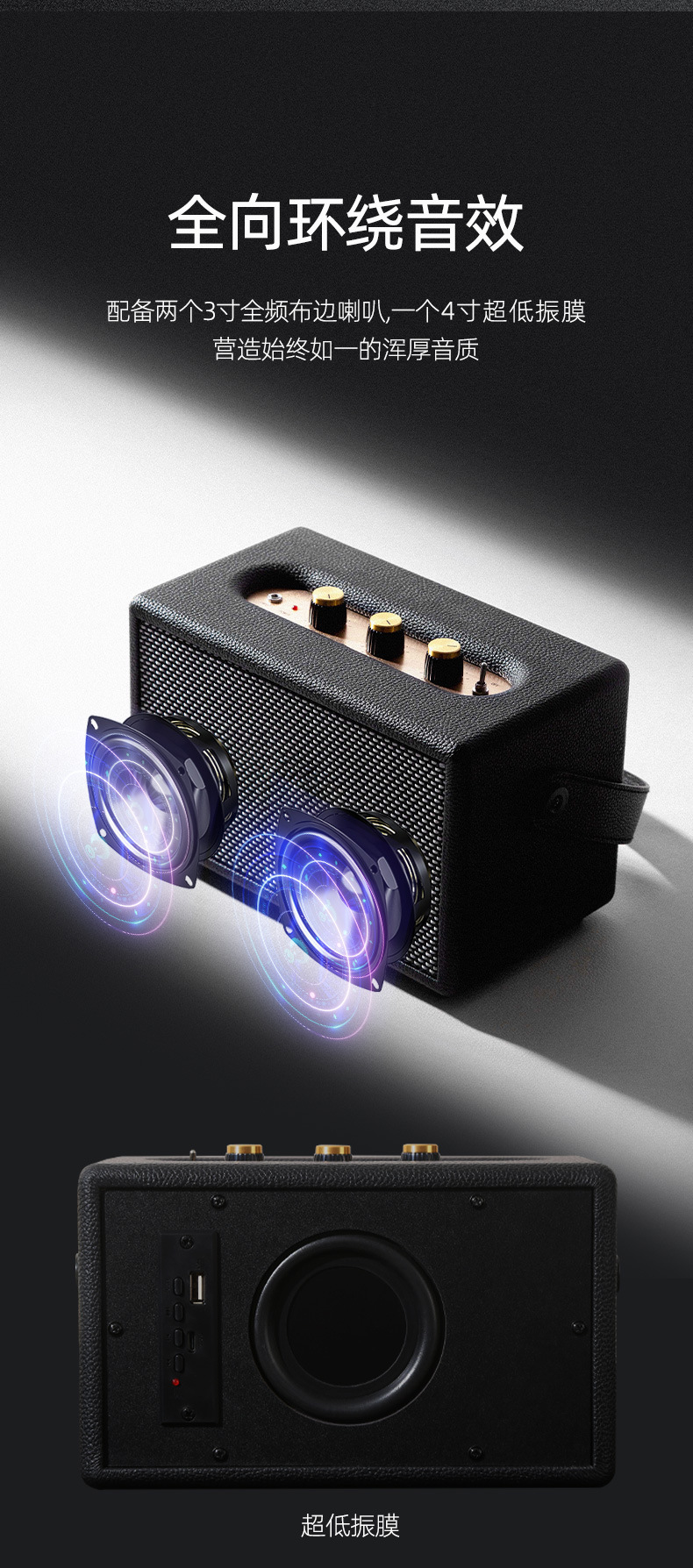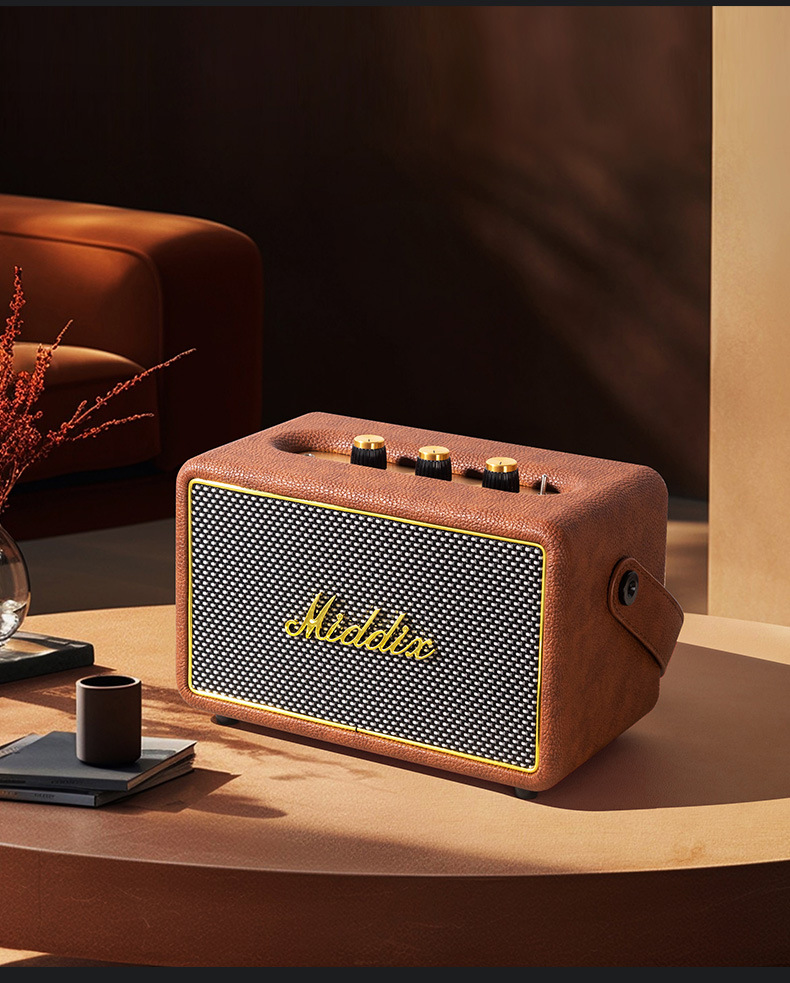 Speaker portabel luar ruangan yang dapat dimasukkan kartu, subwoofer rumah bergaya retro kayu M5, speaker Bluetooth nirkabel Bluetooth 5.0