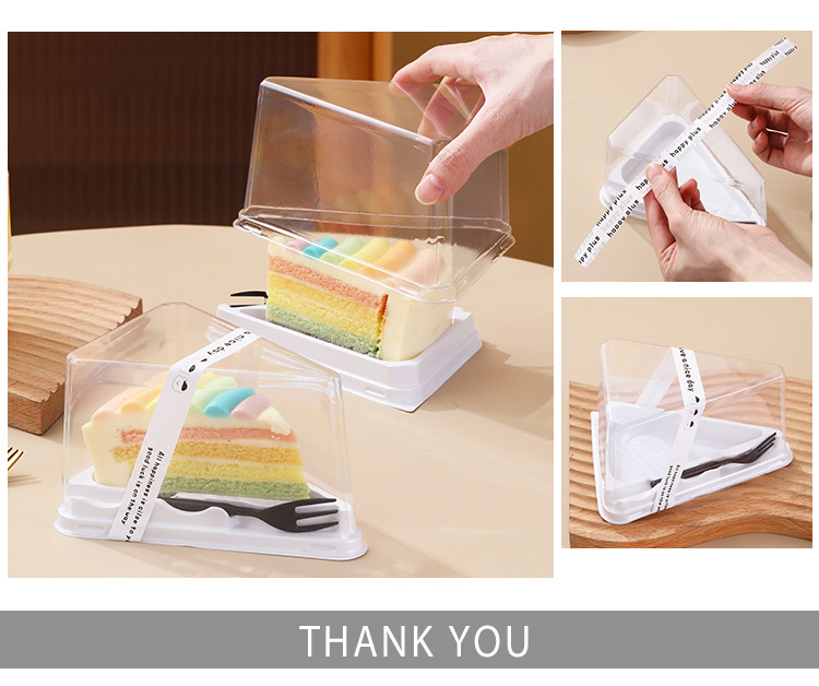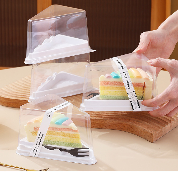 Kotak kue segitiga, mousse seribu lapis, 8 inci dipotong menjadi potongan, kotak kemasan, kotak kemasan kue, kotak hadiah, sepenuhnya transparan
