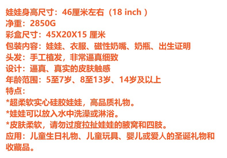 Boneka silikon padat 18 inci, mainan anak perempuan baru lahir, hadiah liburan lucu