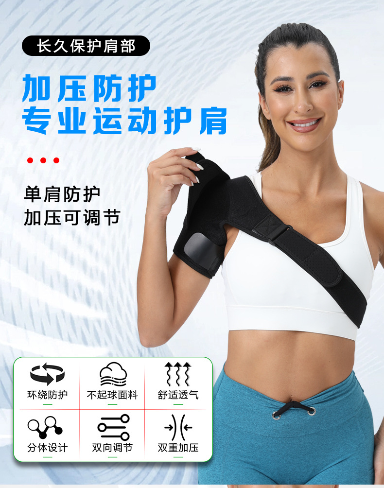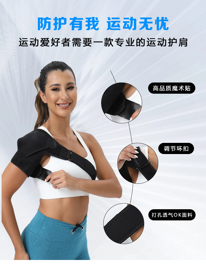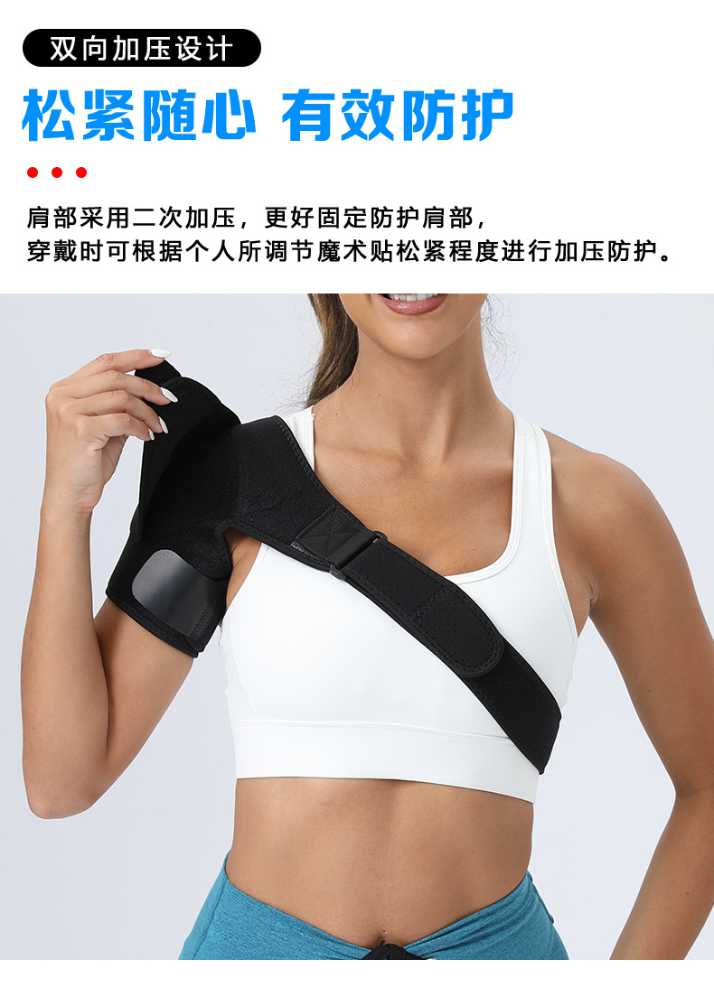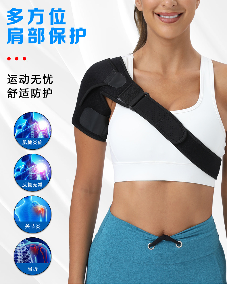 Penyangga bahu olahraga pria dan wanita dapat disesuaikan dan cocok untuk cedera bahu, rehabilitasi penuaan sendi, kebugaran, dan penyangga bahu untuk berlari.