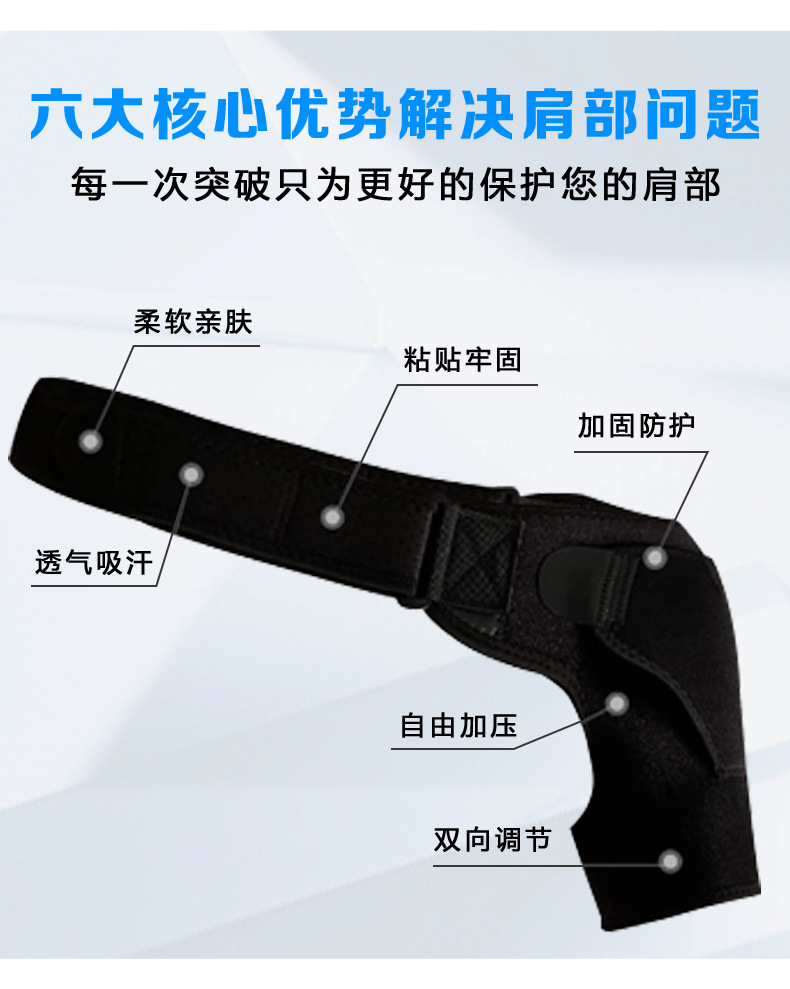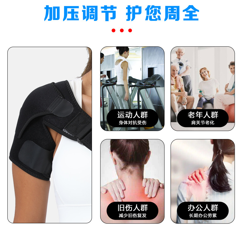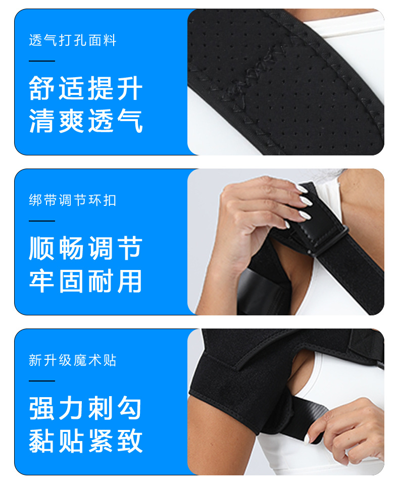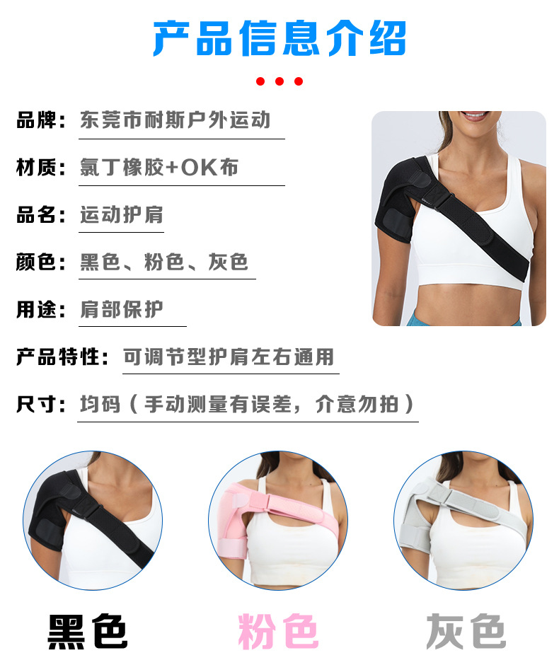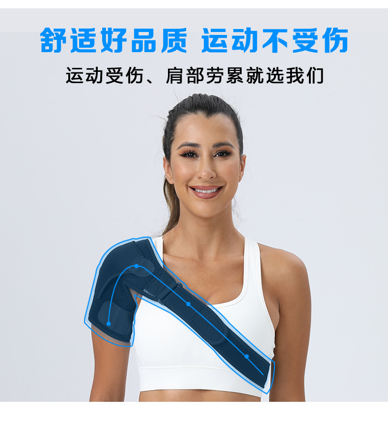 Penyangga bahu olahraga pria dan wanita dapat disesuaikan dan cocok untuk cedera bahu, rehabilitasi penuaan sendi, kebugaran, dan penyangga bahu untuk berlari.