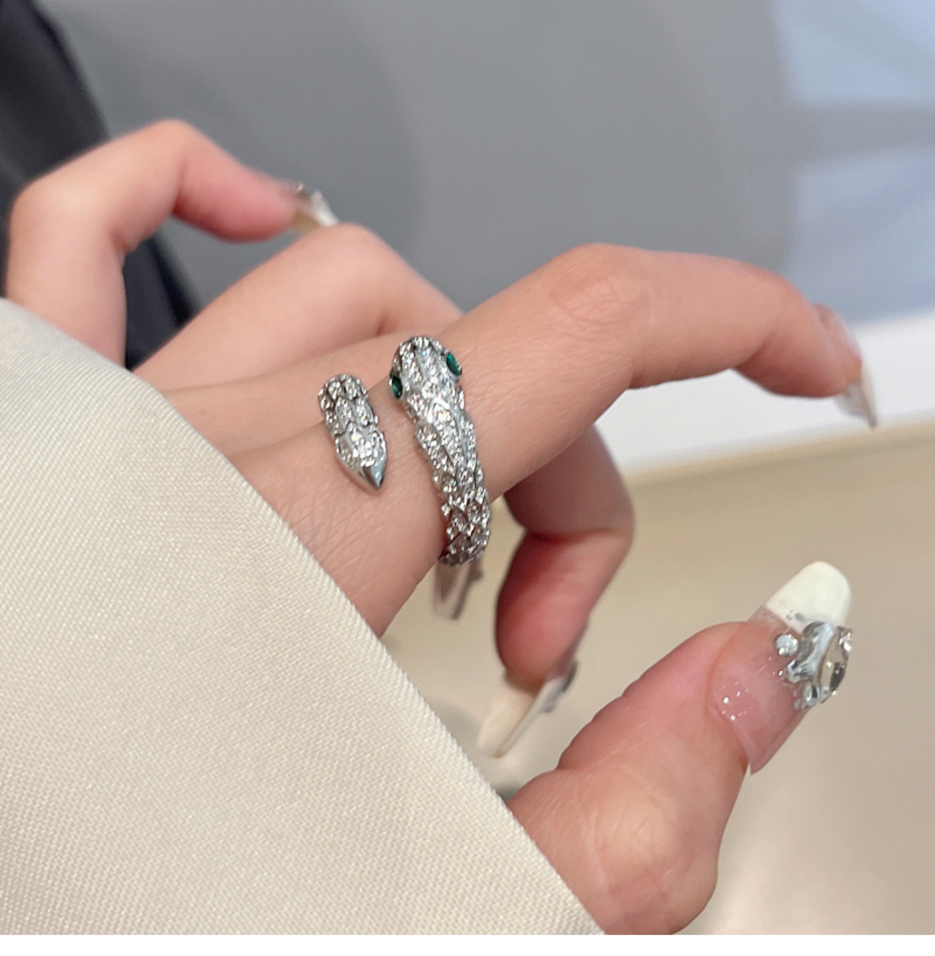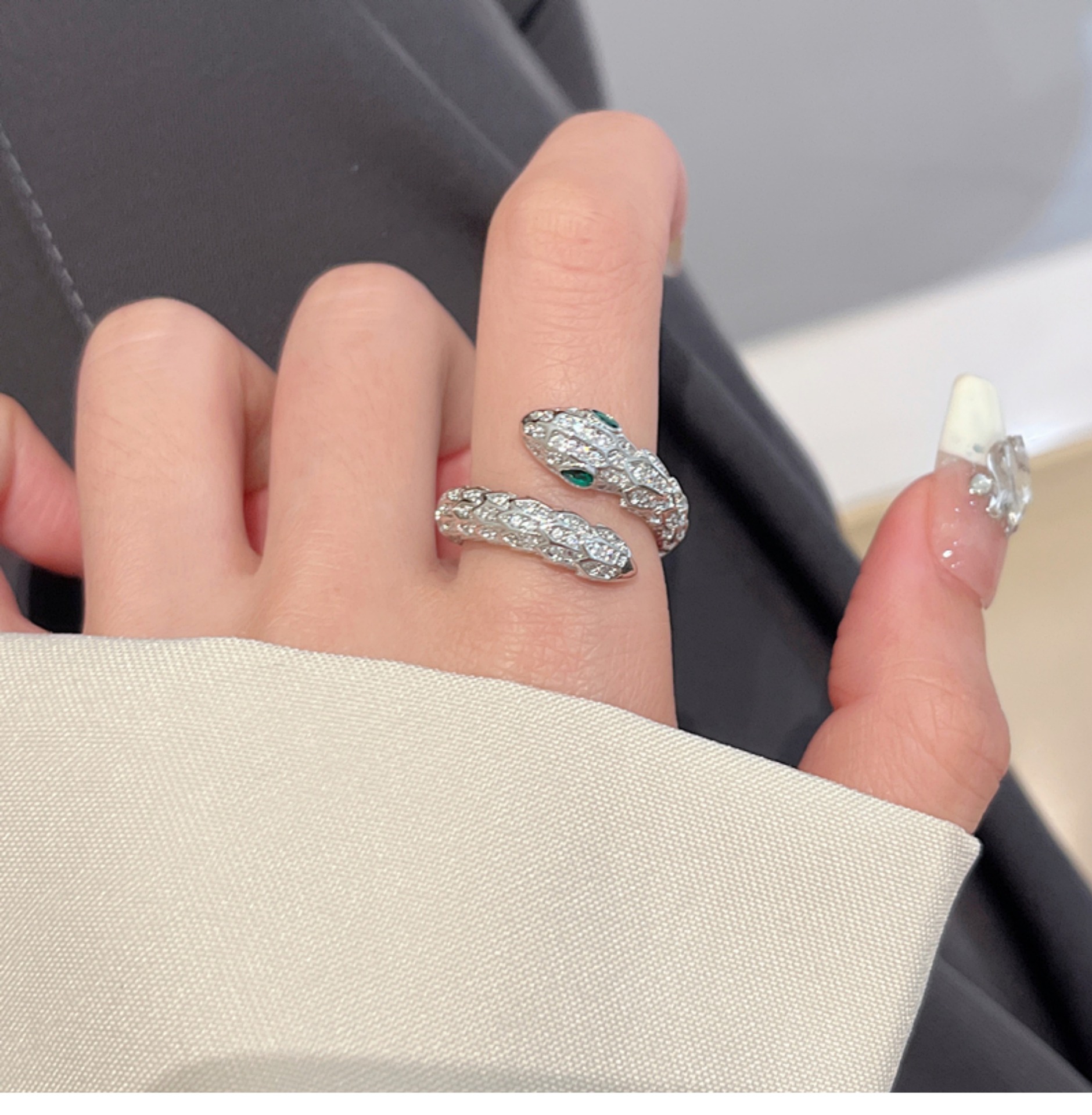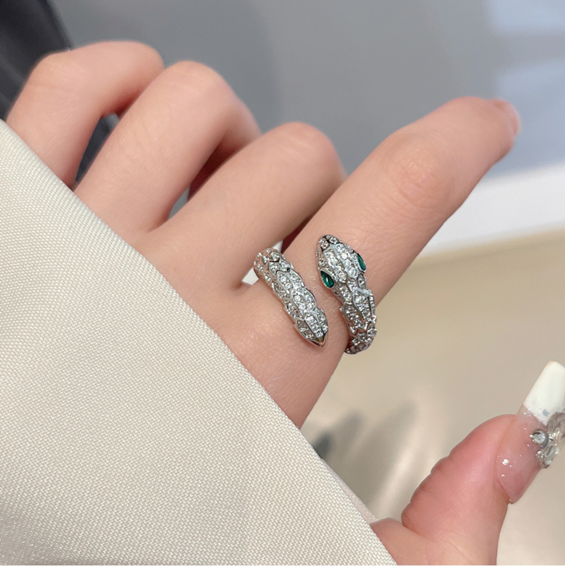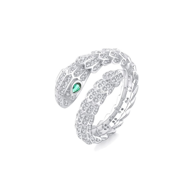 Cincin ular keren manis mewah ringan wanita elegan S925 cincin terbuka perak cincin jari indeks desain niche