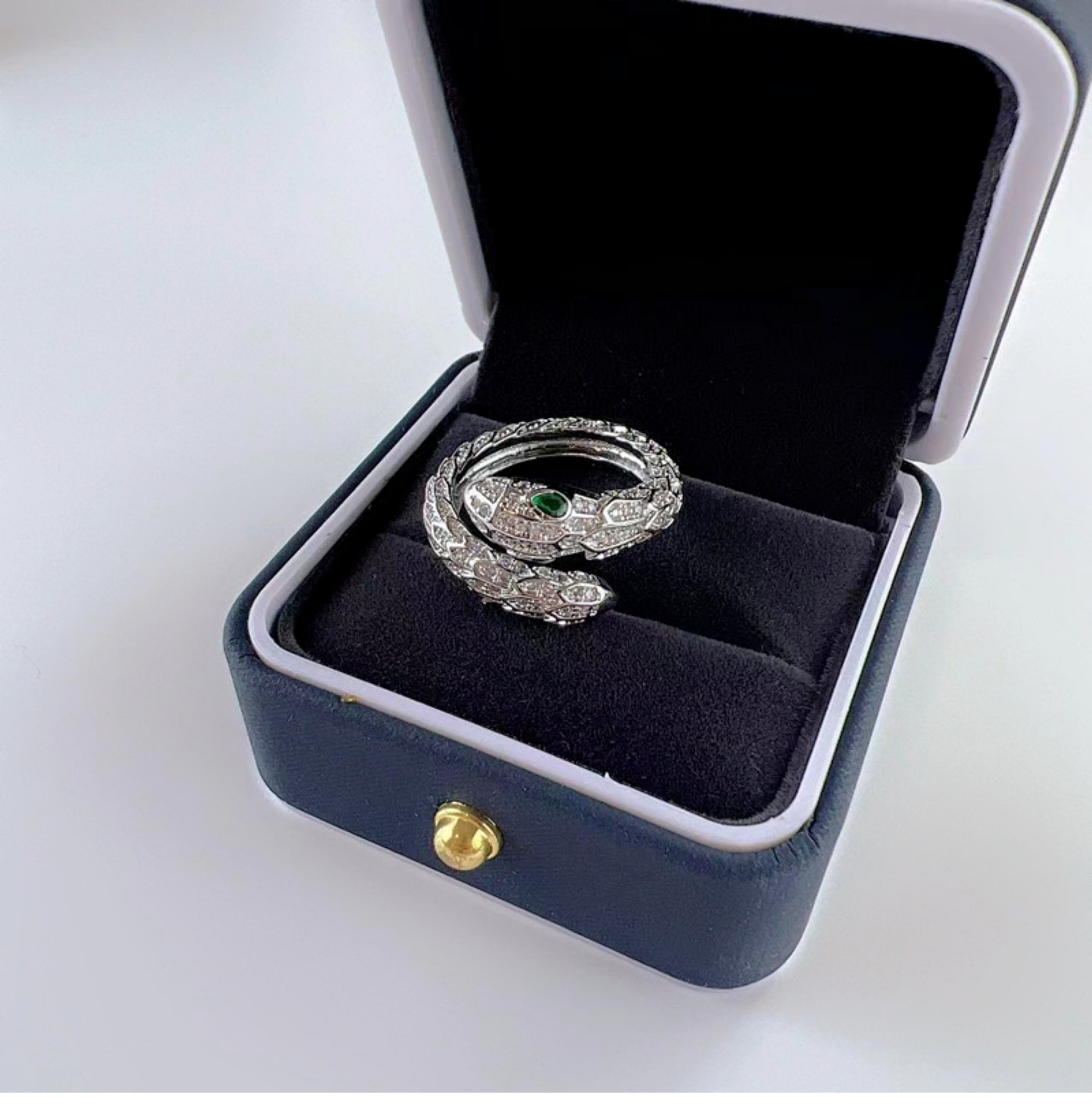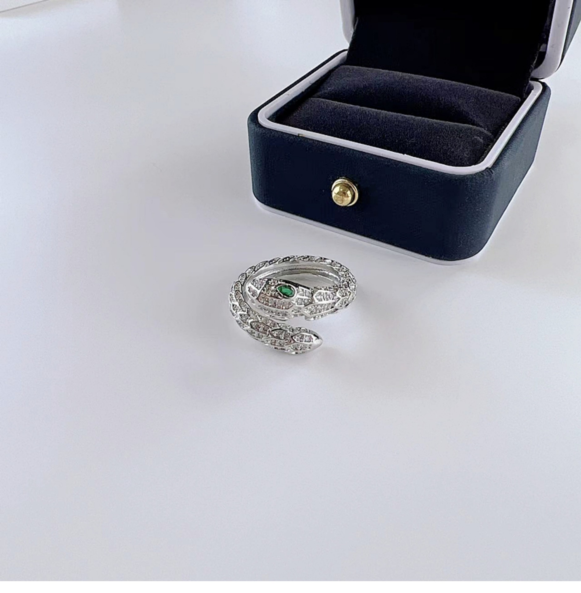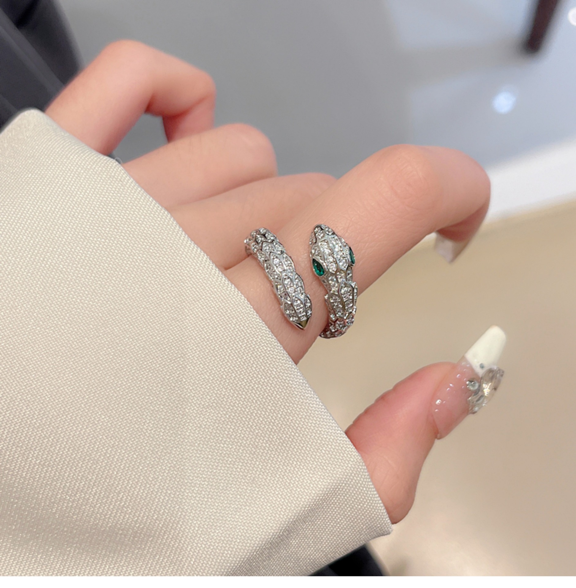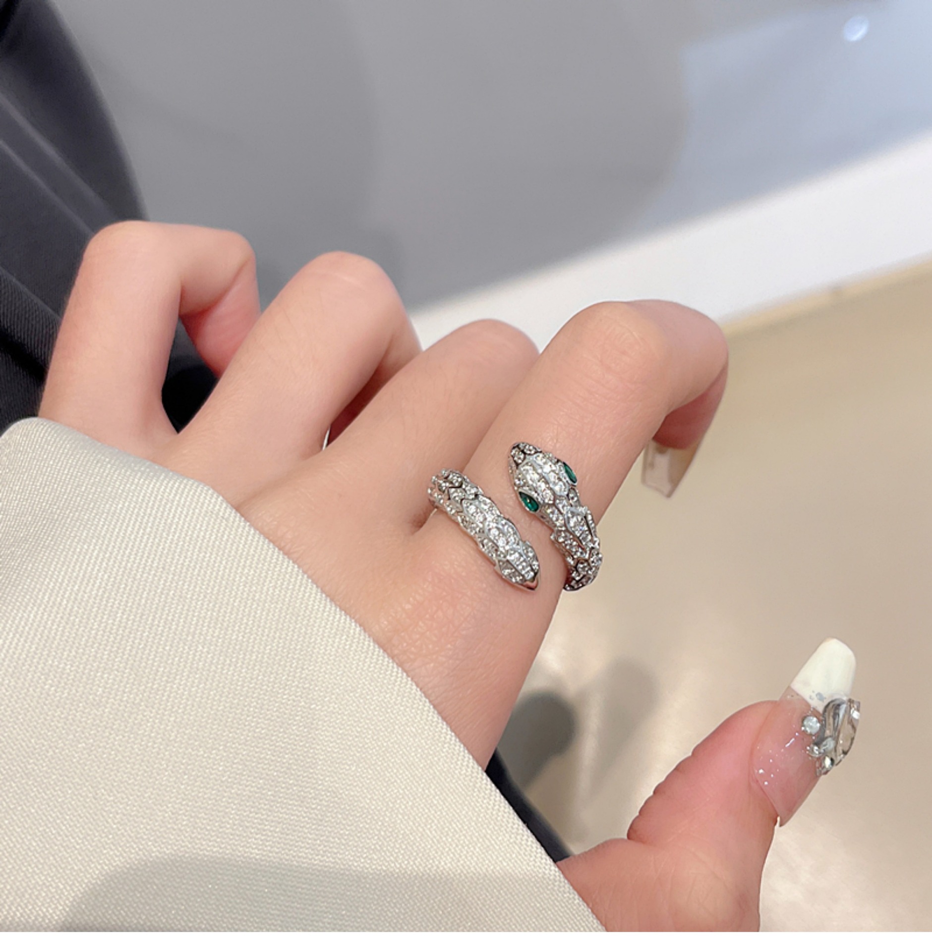 Cincin ular keren manis mewah ringan wanita elegan S925 cincin terbuka perak cincin jari indeks desain niche