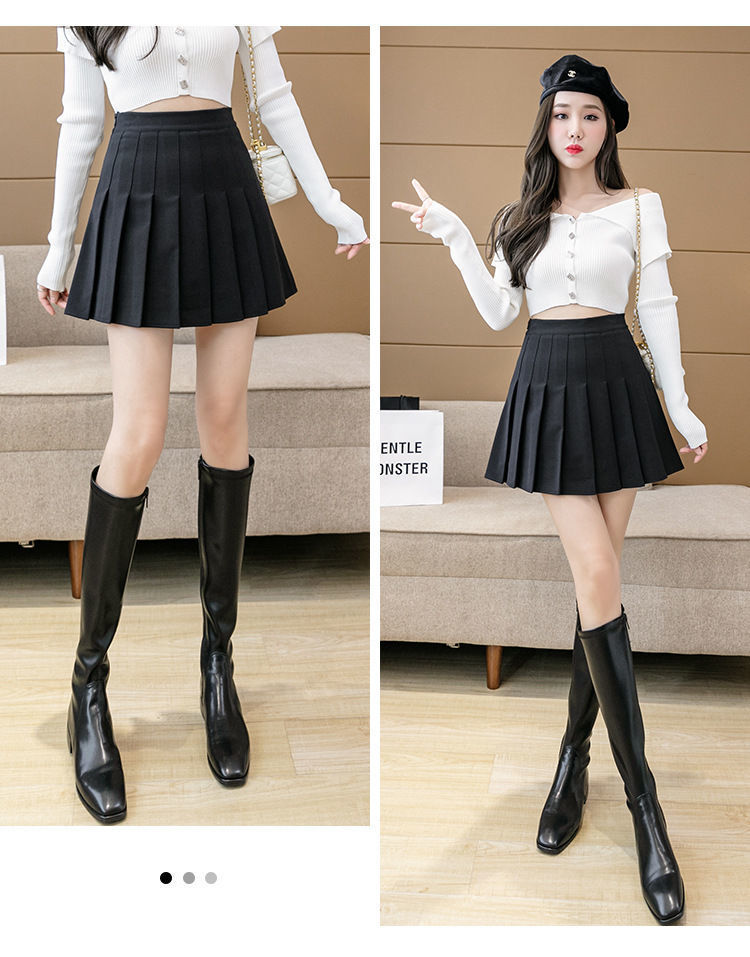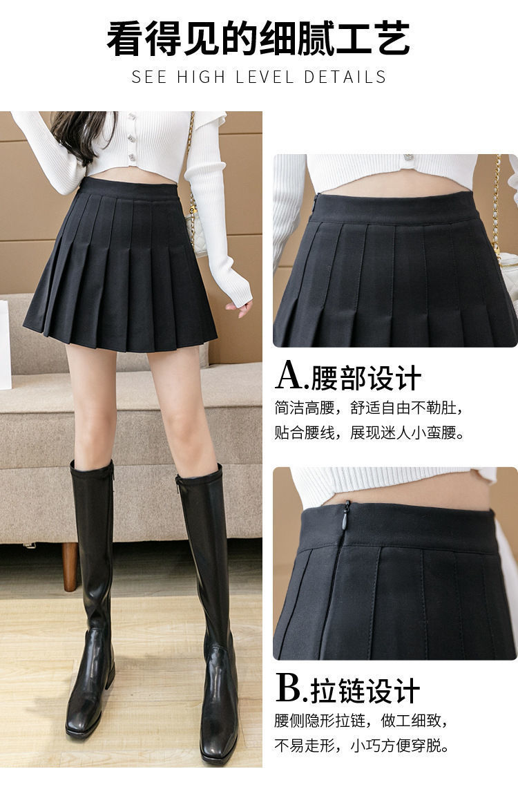 黑色jk百褶裙小个子a字半身裙女秋冬灰色高腰梨形身材遮胯短裙子