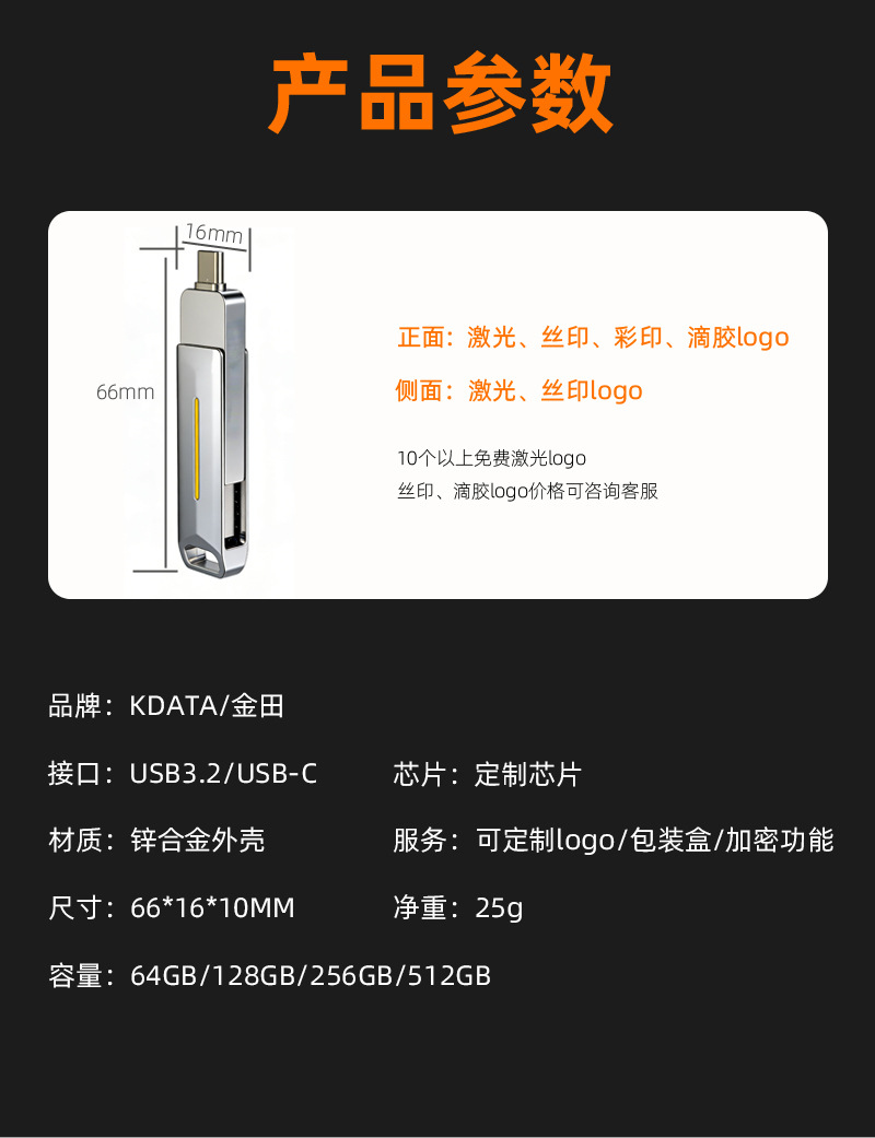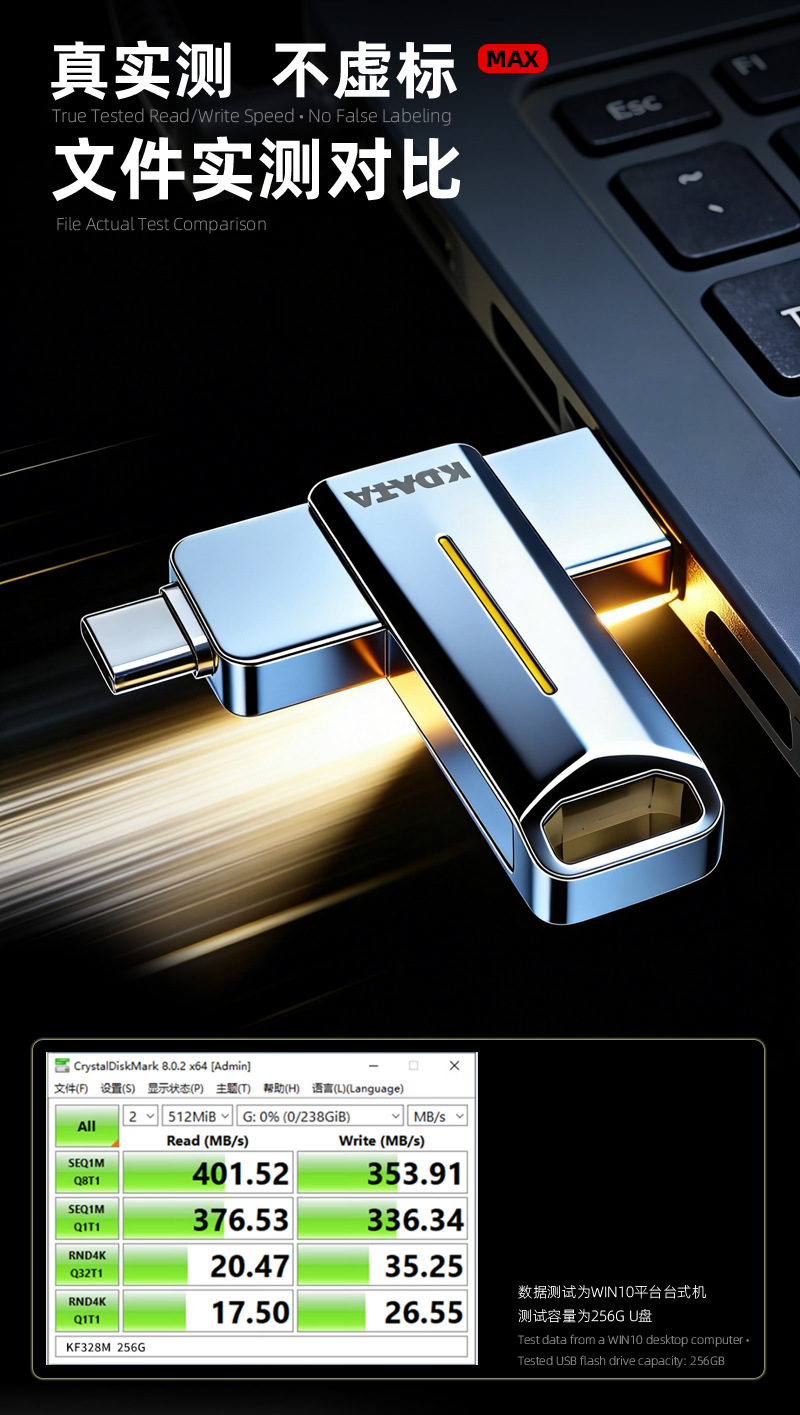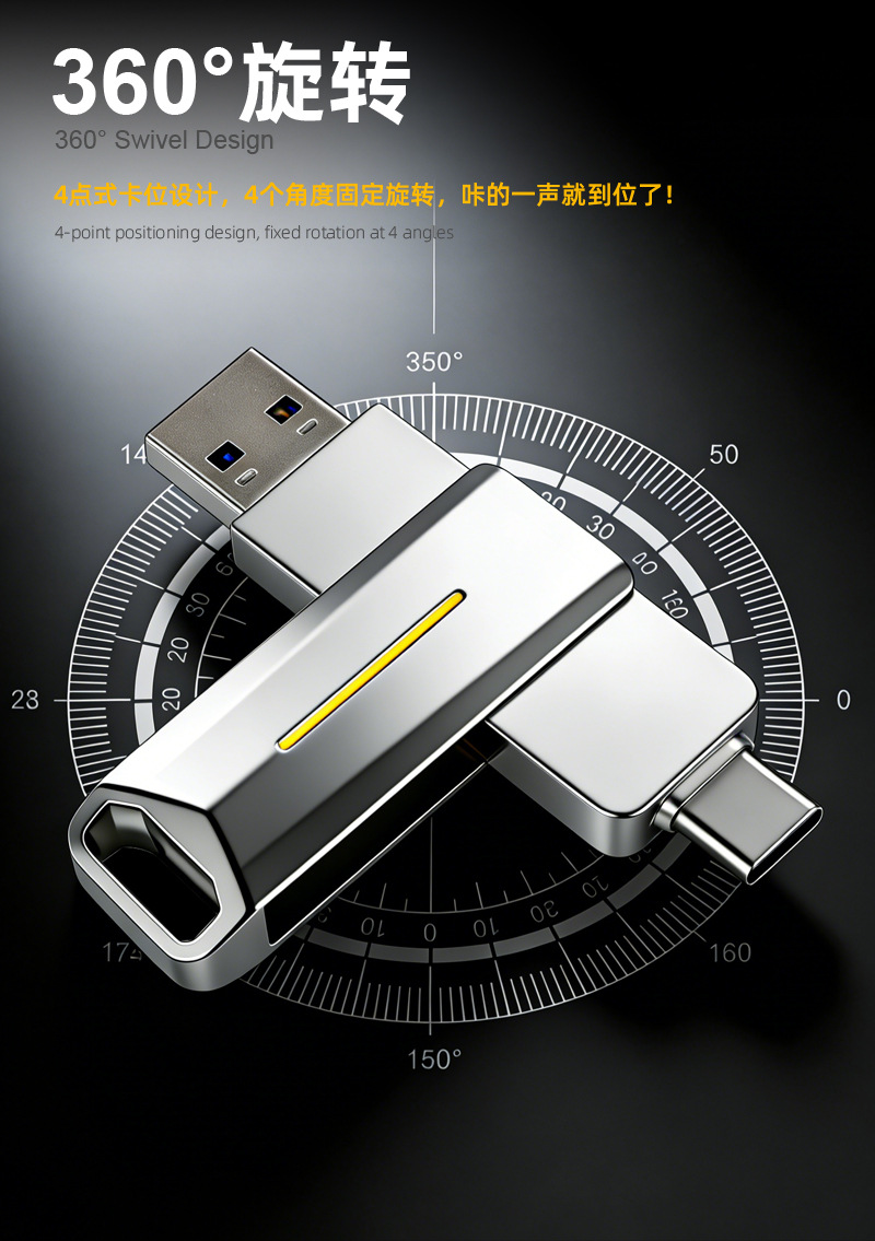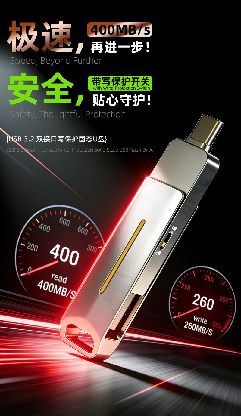 Flash drive USB SSD mobile dengan kapasitas besar, sakelar proteksi tulis, dual-head, dual-use untuk ponsel, flash drive USB solid-state typec3.2, dapat dikustomisasi