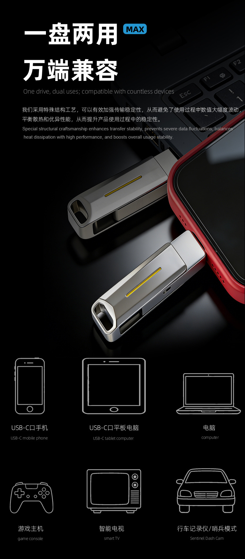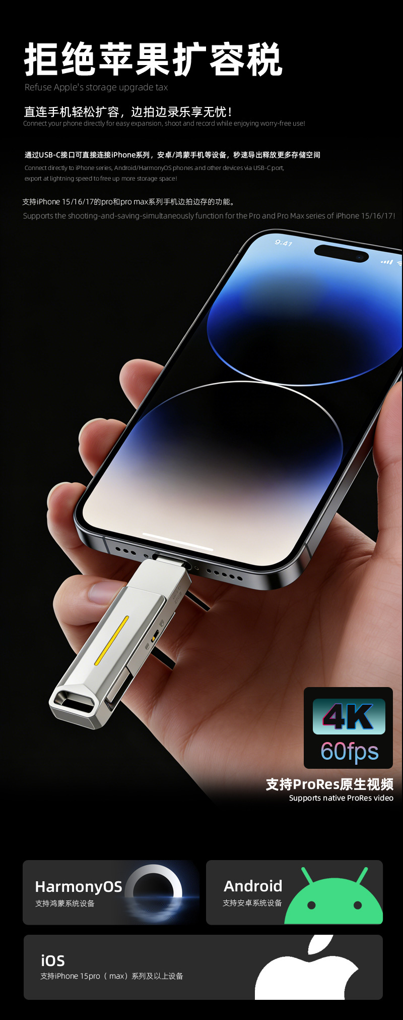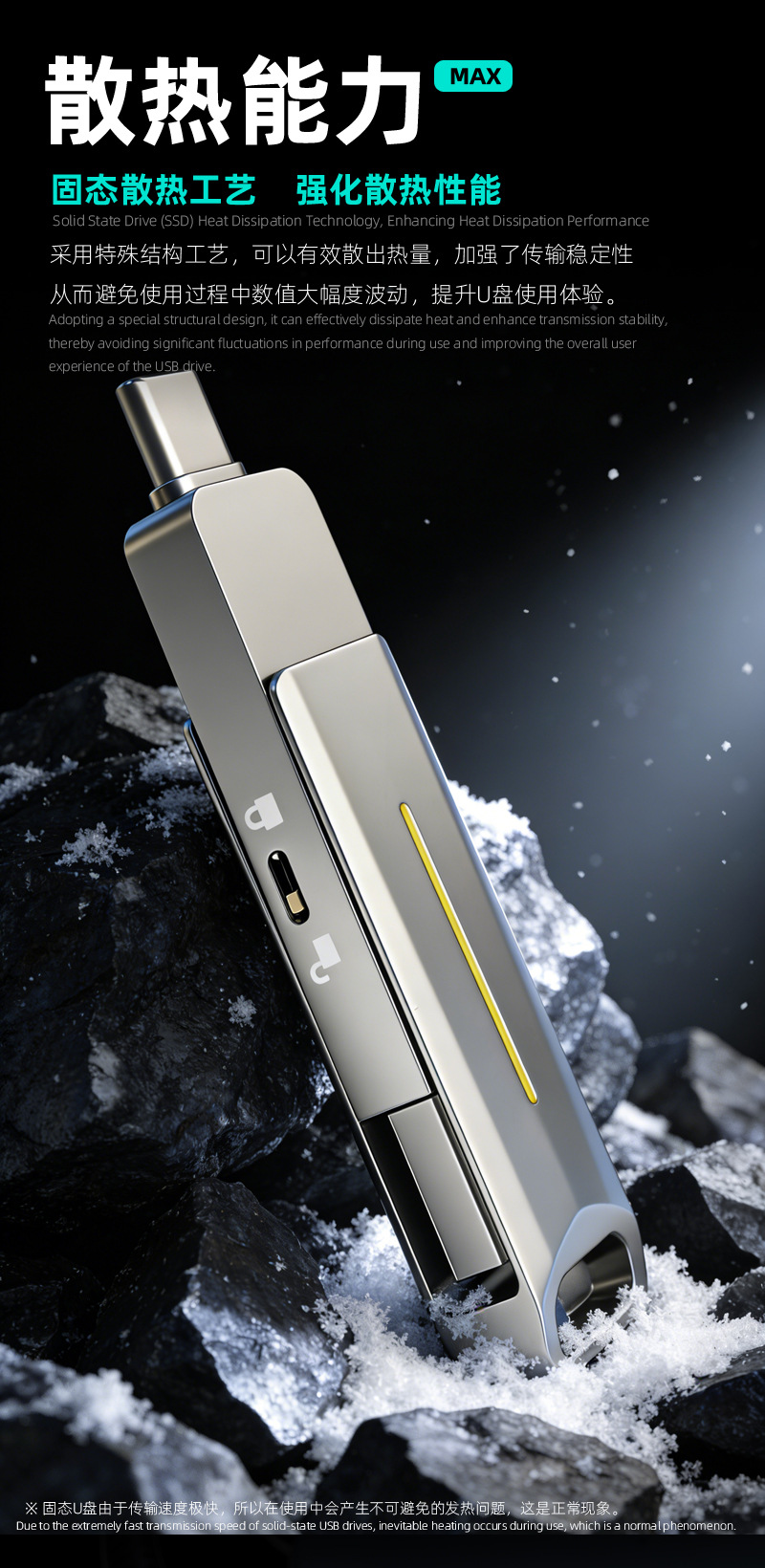 Flash drive USB SSD mobile dengan kapasitas besar, sakelar proteksi tulis, dual-head, dual-use untuk ponsel, flash drive USB solid-state typec3.2, dapat dikustomisasi