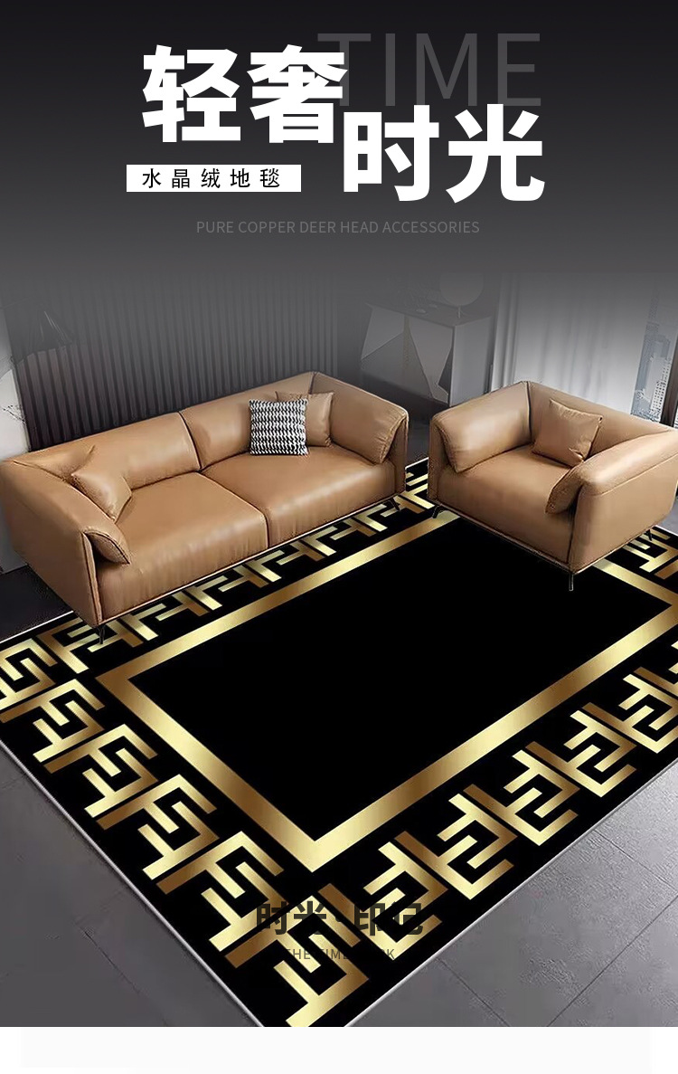 Karpet beludru kristal mewah ringan, alas meja teh ruang tamu tahan noda mudah perawatan kelas tinggi anti-licin area besar rumah tangga
