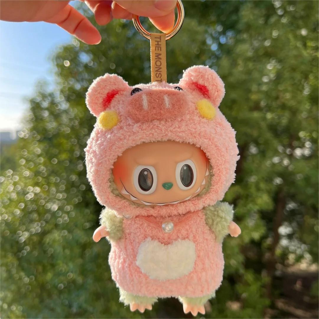Pakaian boneka Labubu generasi pertama dan ketiga, pakaian boneka wajah vinil bentuk hati macaron 17cm untuk dandanan