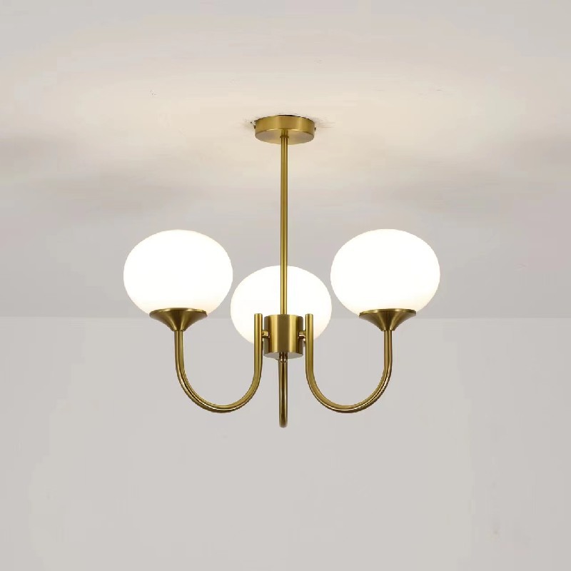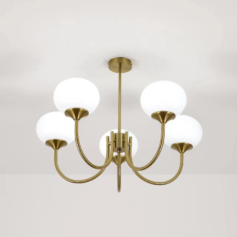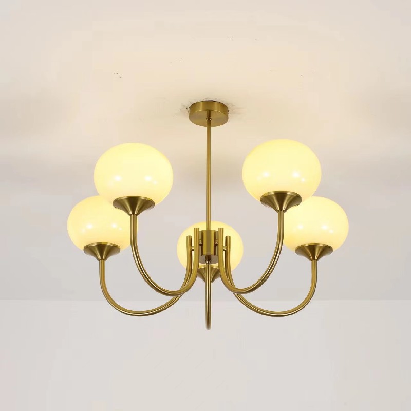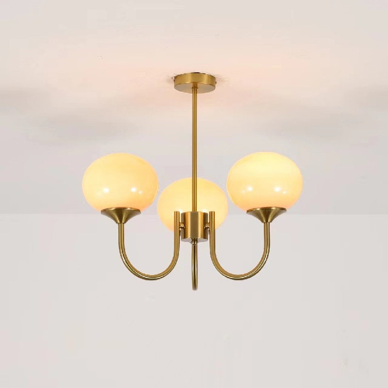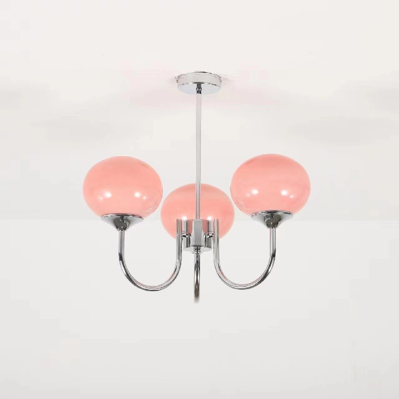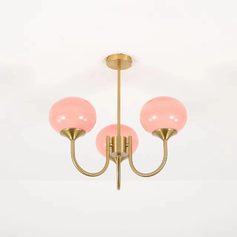 Lampu gantung LED, lampu gantung LED kaca merah muda, kacang ajaib, kamar tidur anak-anak, seni kreatif, desainer gaya krim sederhana