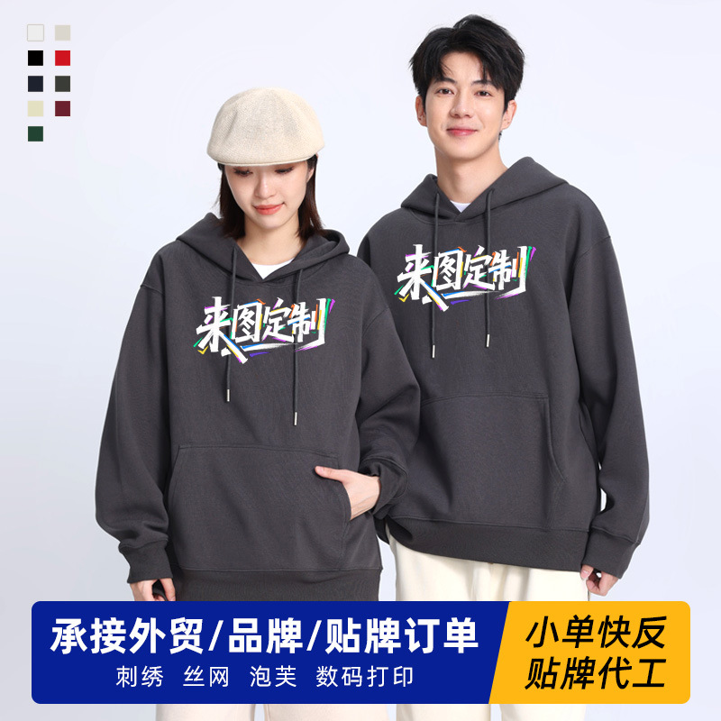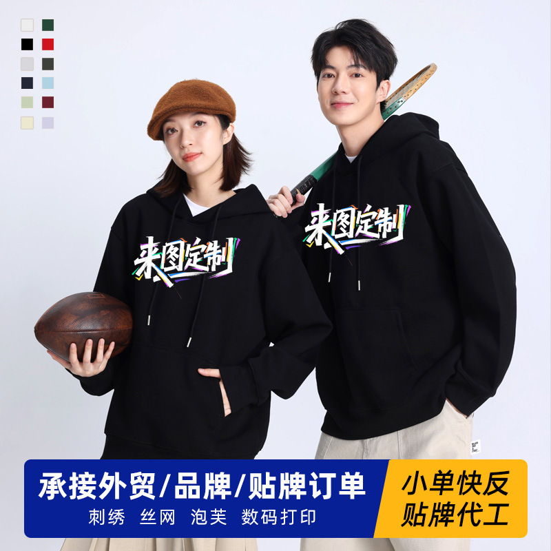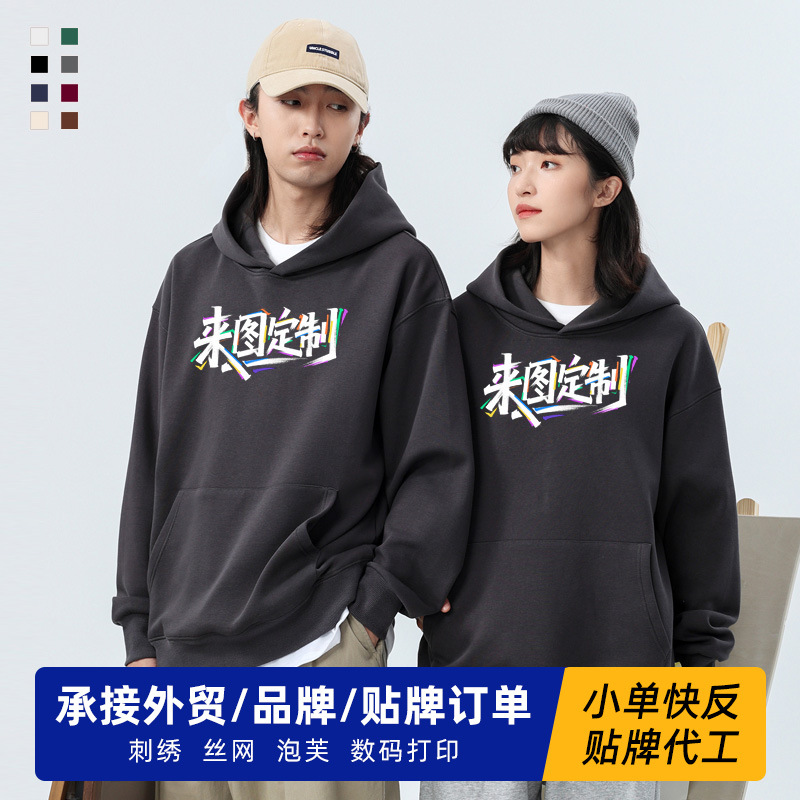 男式卫衣定制印logo秋冬长袖外套宽松重磅纯棉潮牌男士印花连帽衫