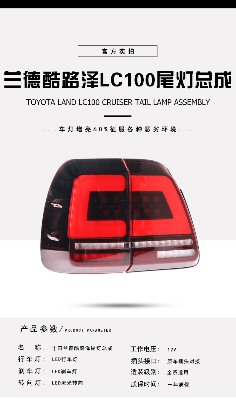 Berlaku untuk 02-07 Toyota landcooluze LC100 rakitan lampu belakang LED modifikasi lampu sein lampu berjalan