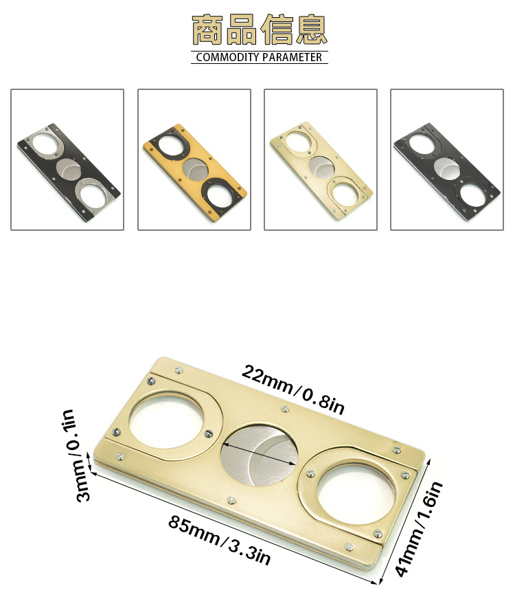 Penawaran spesial pemotong cerutu baja tahan karat persegi dua sisi, pemotong cerutu guillotine dua sisi, pemotong rokok, gunting cerutu