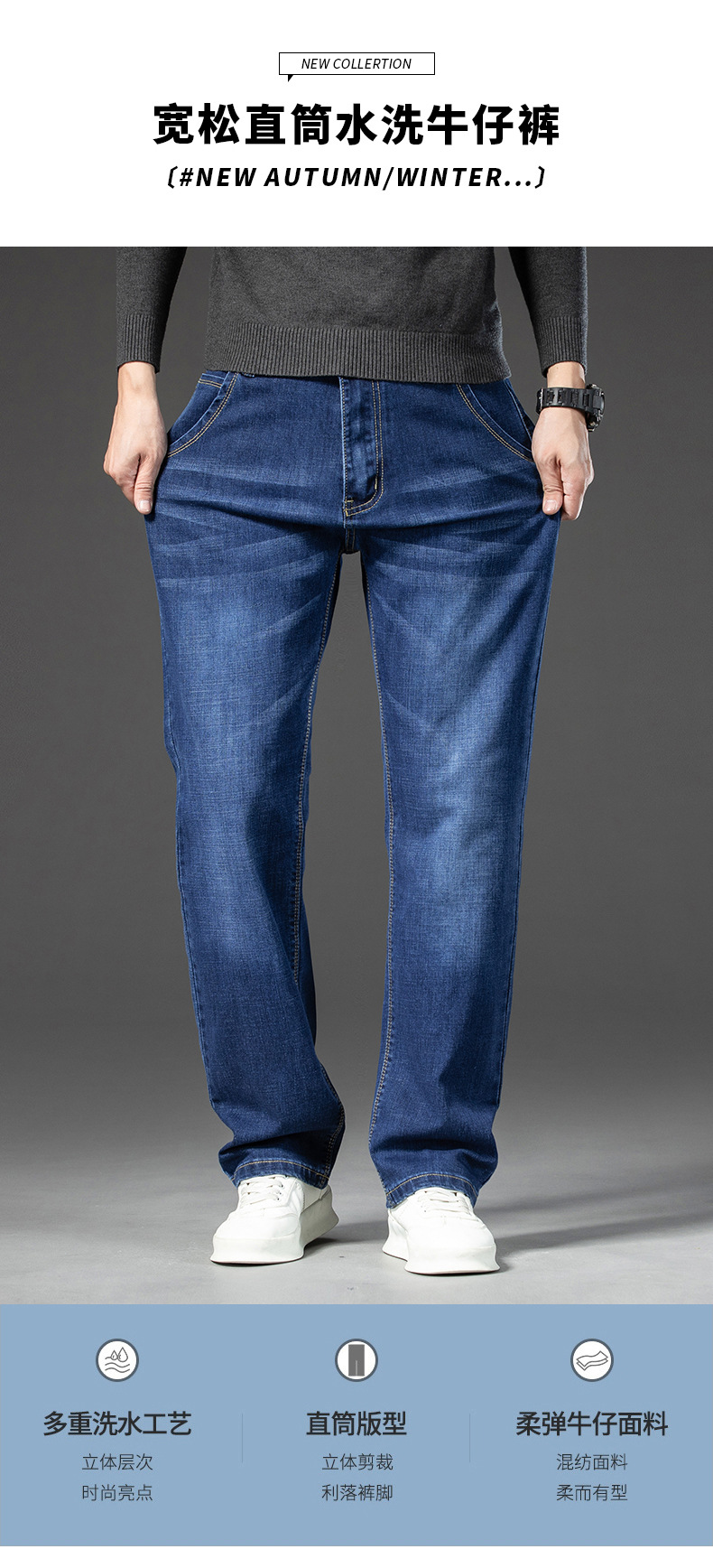 牛仔裤男士春秋款弹力宽松直筒休闲裤子男生2024新款秋季长裤子