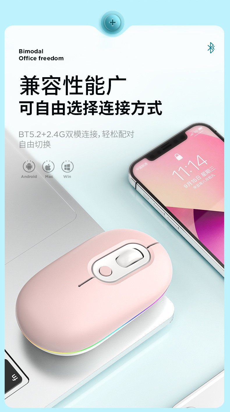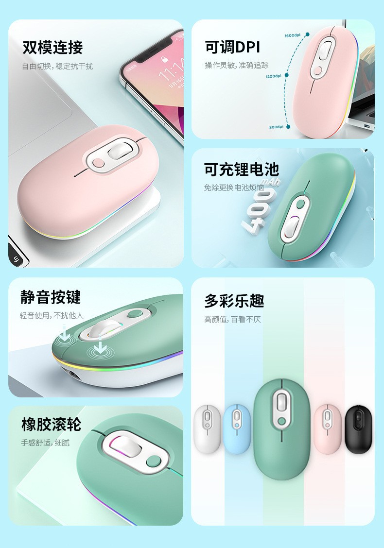 Lintas Batas Model Baru Isi Ulang Tenang Ganda Cahaya Mouse Nirkabel Multi Warna Hadiah Mouse Permainan Kantor Tempat Grosir