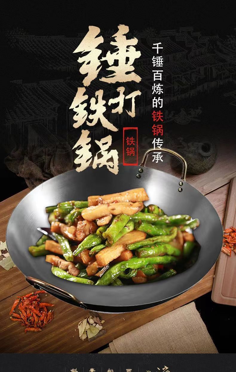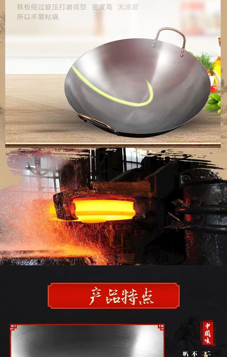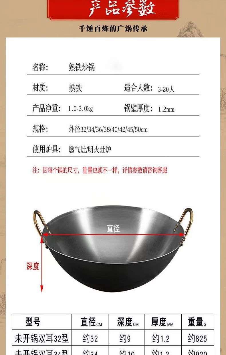 Pot besi gaya kuno, panci besi tebal telinga ganda, panci besi masak komersial hotel, panci koki khusus panci baja besar tidak dilapisi
