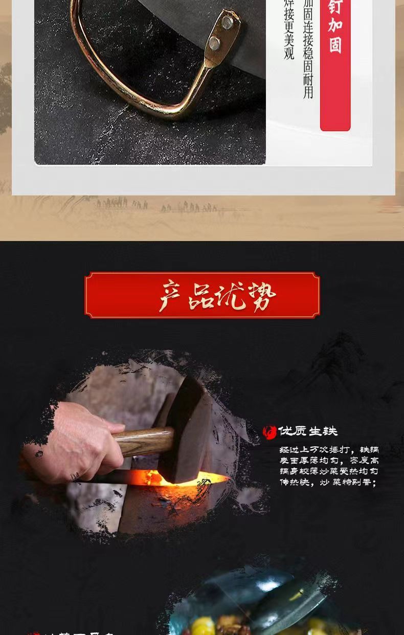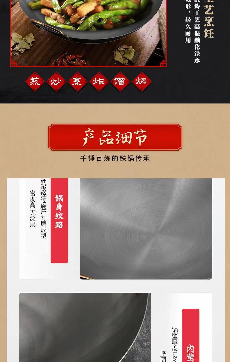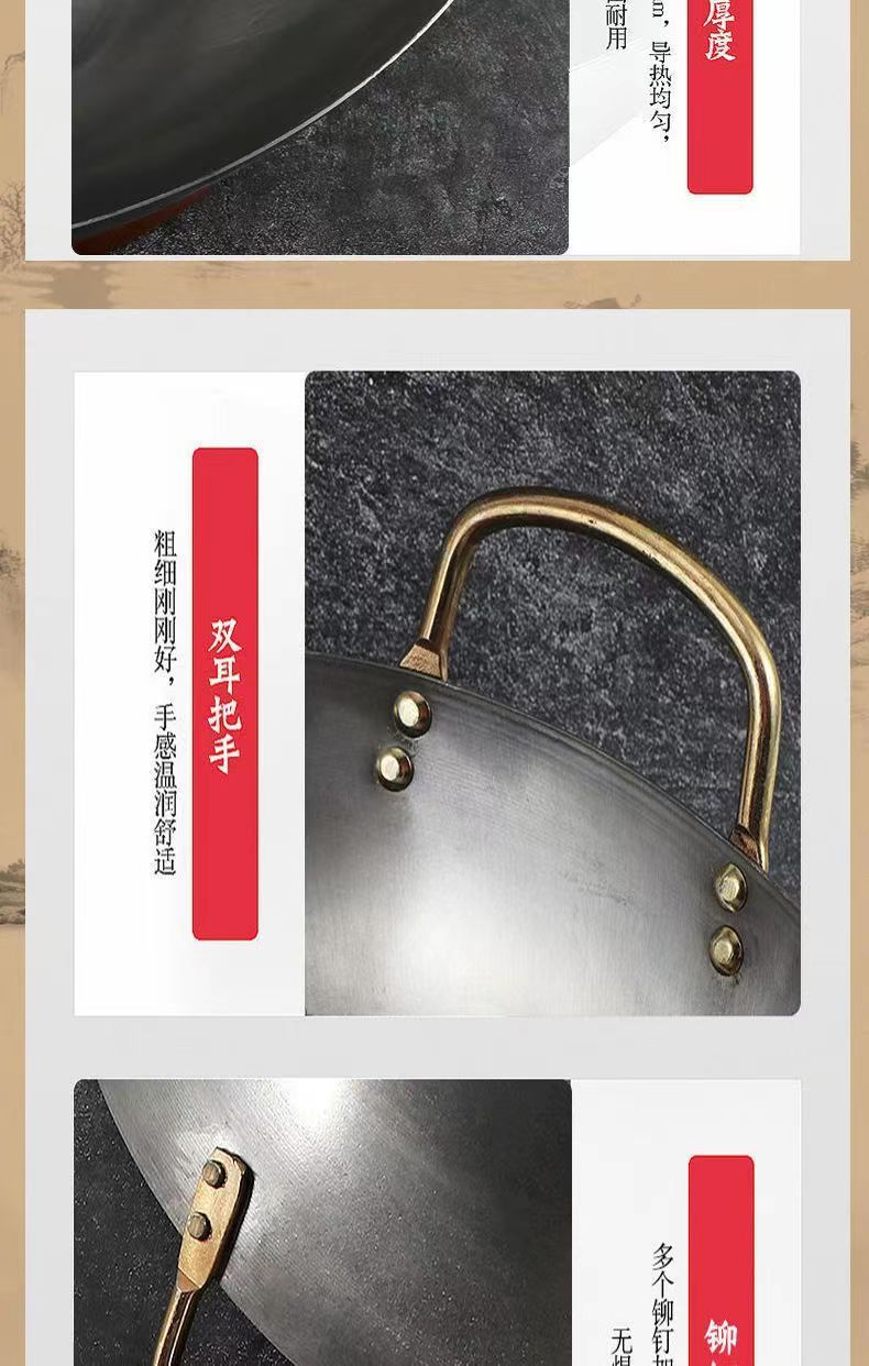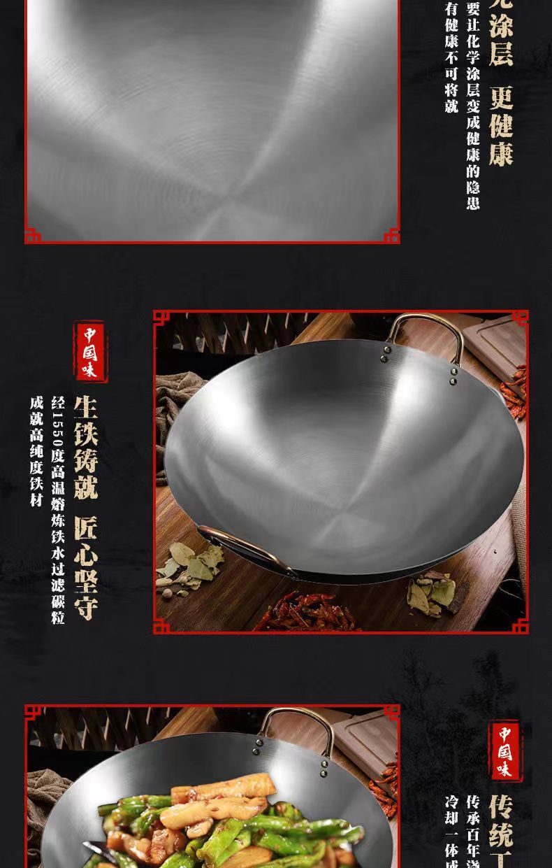 Pot besi gaya kuno, panci besi tebal telinga ganda, panci besi masak komersial hotel, panci koki khusus panci baja besar tidak dilapisi