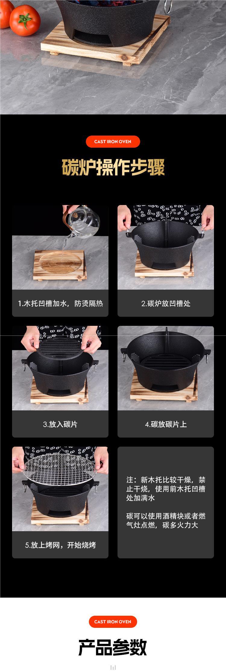 Besi cor kompor arang babi besi karbon oven cor besi arang kompor barbekyu dipertebal pot panas kompor arang