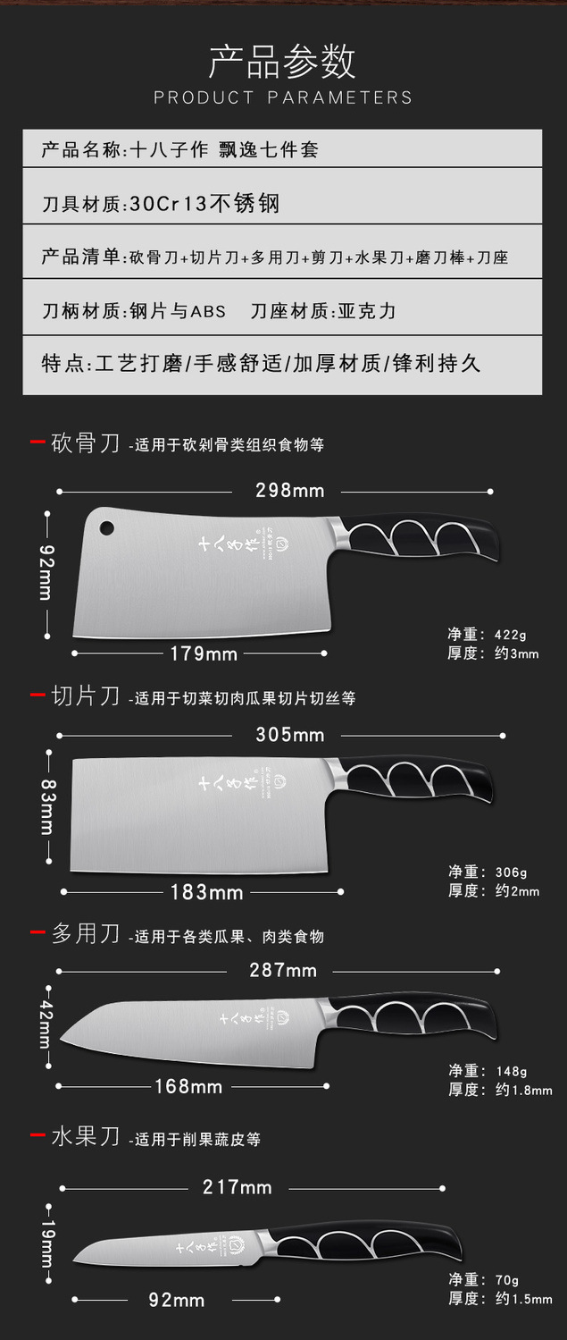 Sepuluh delapan potong pisau dapur rumah tangga setelan pisau dapur baja tahan karat tajam tujuh potong Yangjiang pisau sepuluh-potong