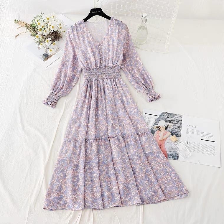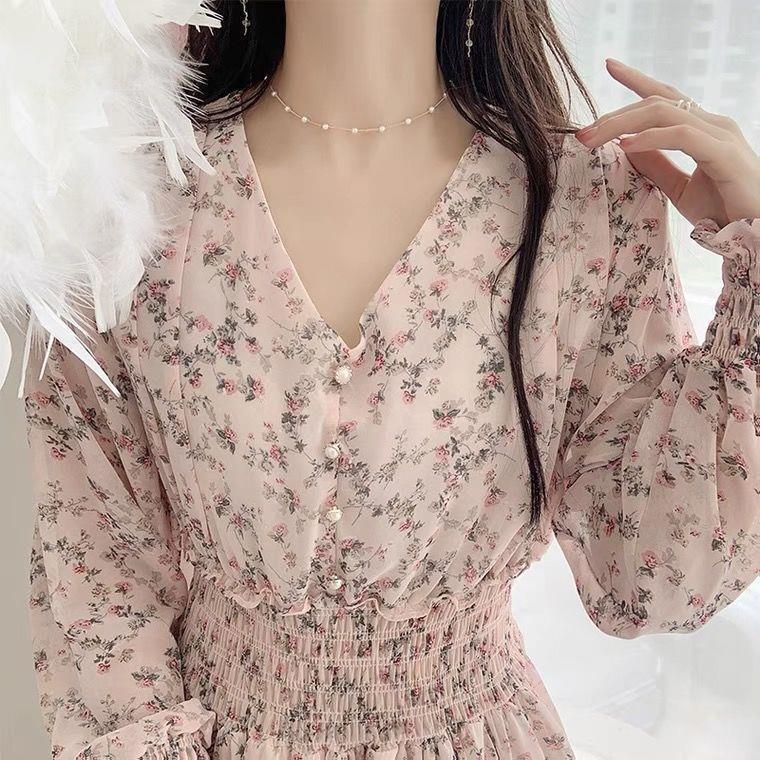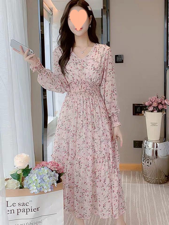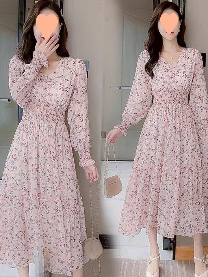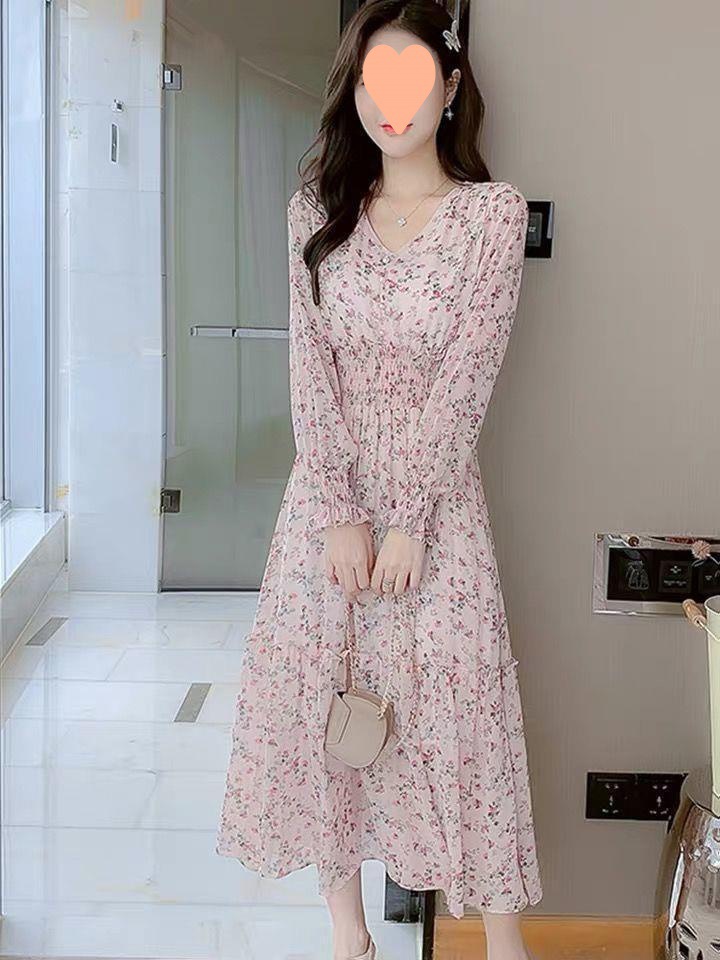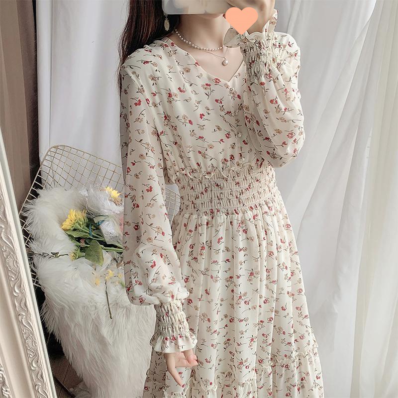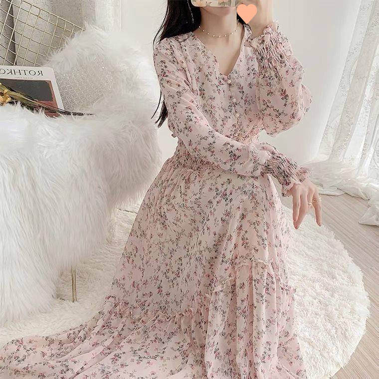 Rok panjang motif bunga artistik, rok sifon, rok panjang, Rok Musim Semi gaya Korea, rok peri kerut ayunan besar, baru