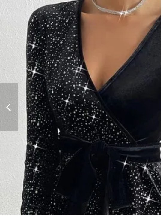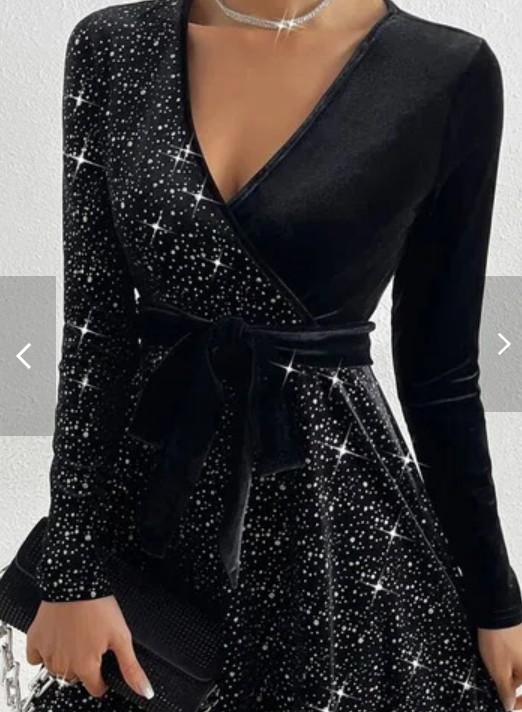 2024 Crossborder Eropa Amerika Musim Gugur dan Musim Dingin Model Baru Warna Solid Seksi Payet Beludru Gaun Ready Stock
