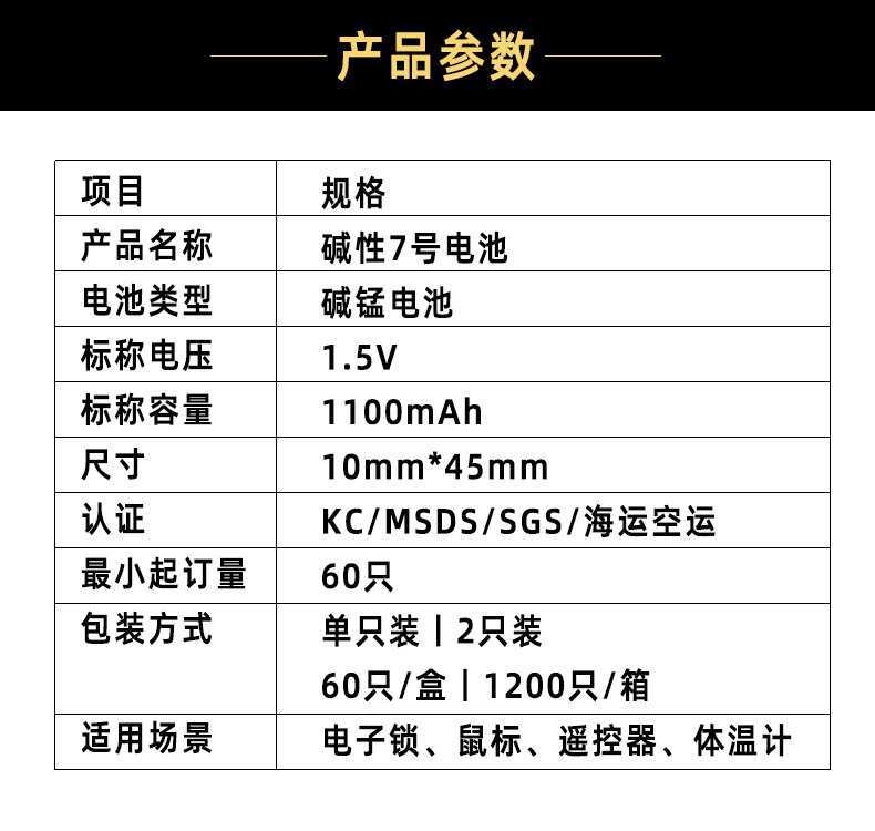 kc认证跨境批发现货供应品牌同款碱性七号电池