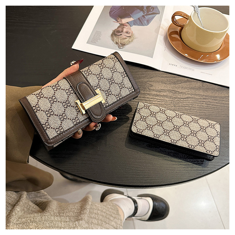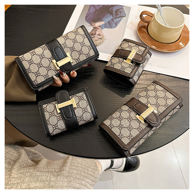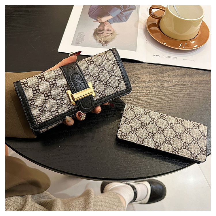 Houndstooth dompet koin niche wanita, dompet kapasitas besar ringan mewah baru 2024 untuk pelajar