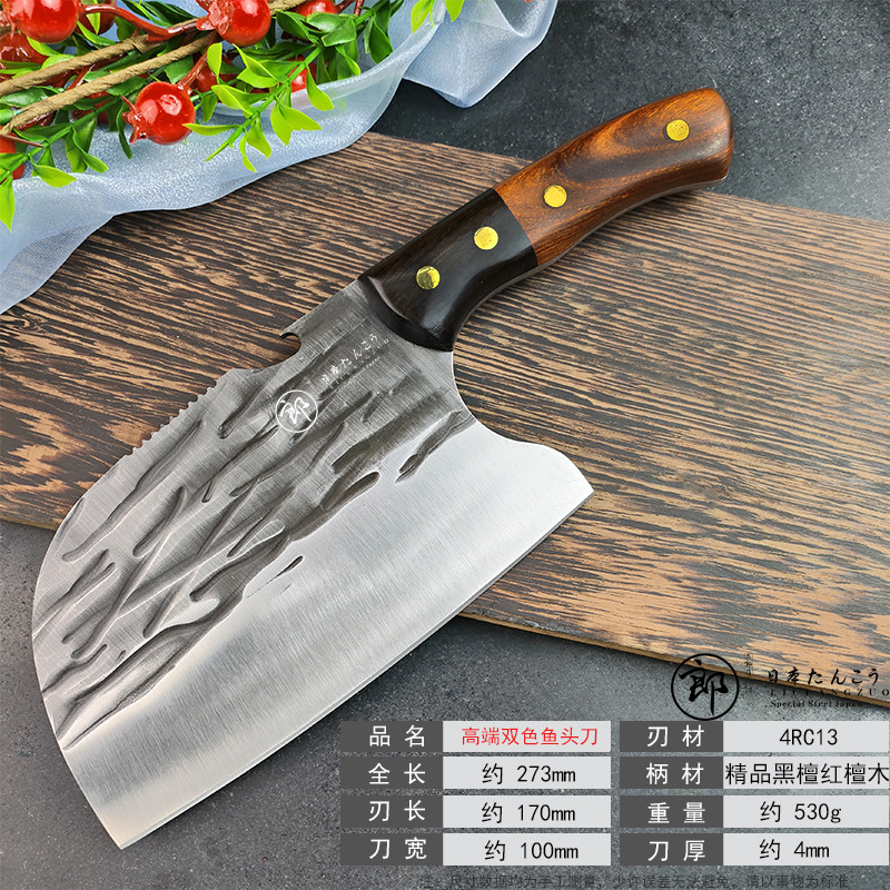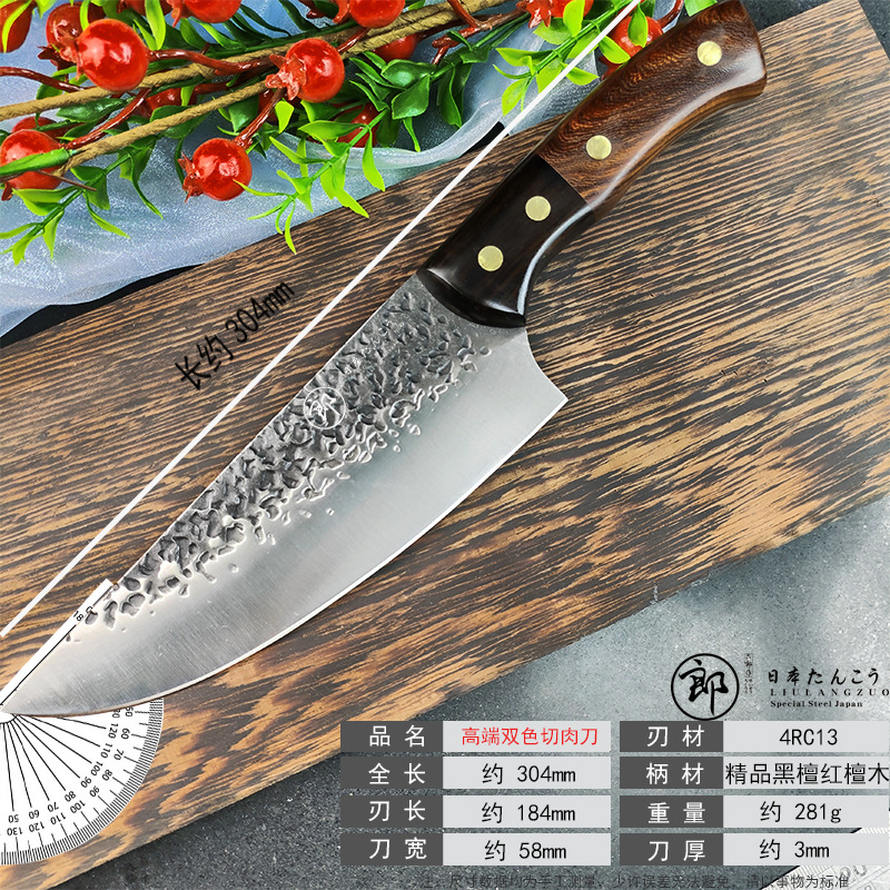 Liulang pisau dapur pegangan kayu eboni merah dua warna cocok untuk pisau daging potong Damaskus pisau potong kepala ikan pisau tajam