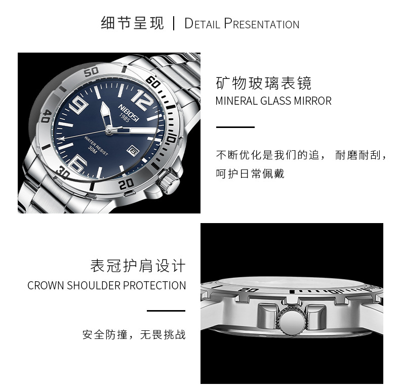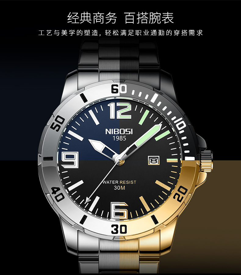 Jam Tangan Pria Kasual Lintas Batas Nibosi Jam Tangan Quartz Pria Sederhana Jam Tangan Multifungsi Cahaya Malam Tahan Air