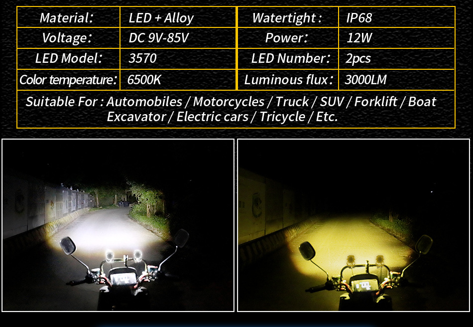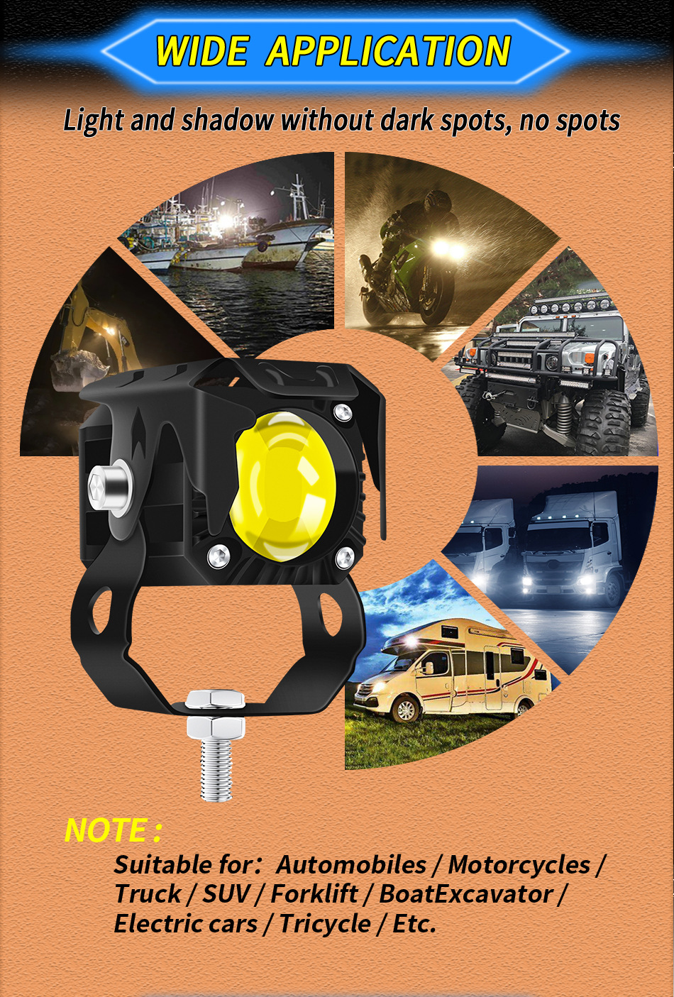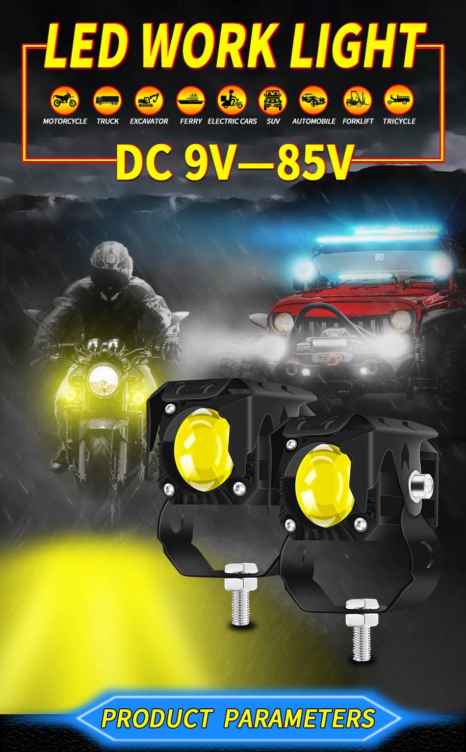 跨境热销 摩托车大灯双色远近光机车led射灯12V-85V电动车前照灯