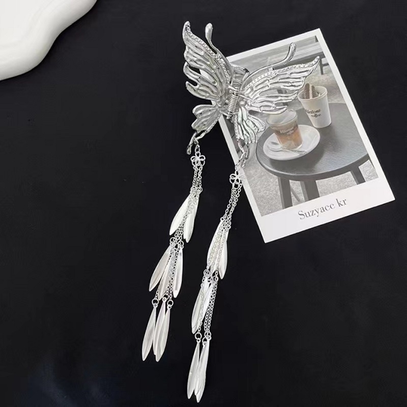 Jepit Rambut Rumbai Kupu-Kupu Gaya Tiongkok Baru Jepit Rambut Gaya Etnik Retro Rok Kancing Rambut Kuda Aksesori Tiara Perak Gaya Kuno