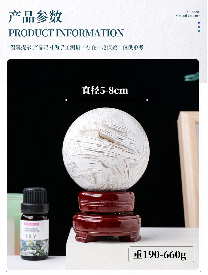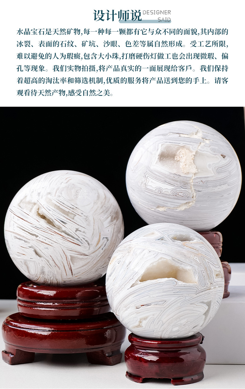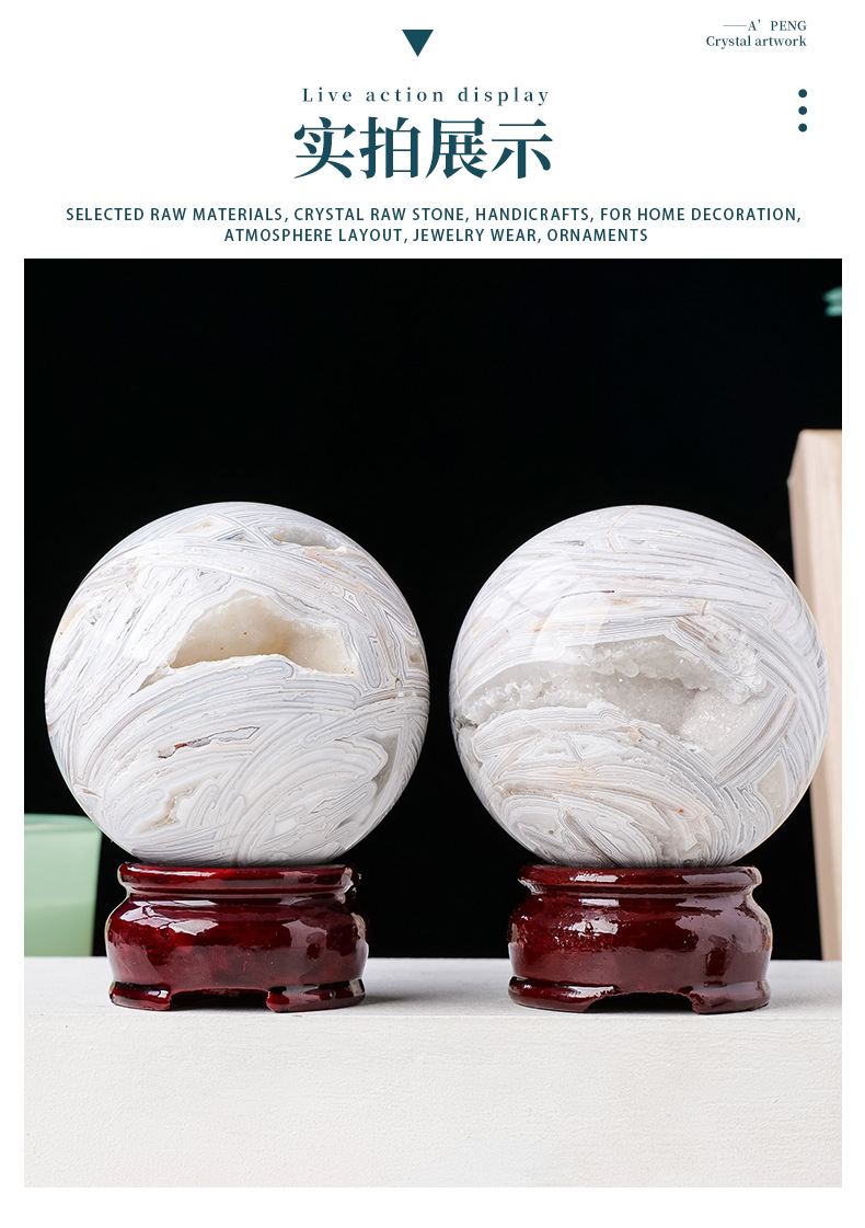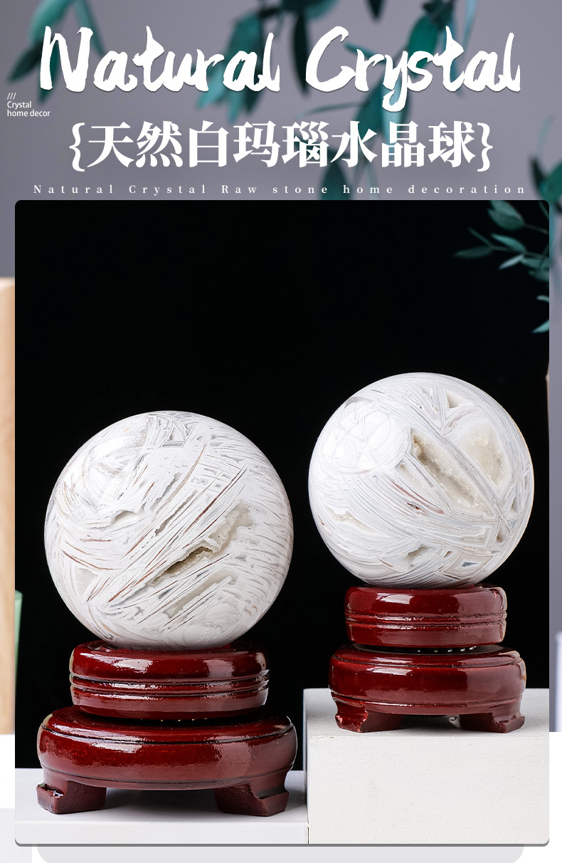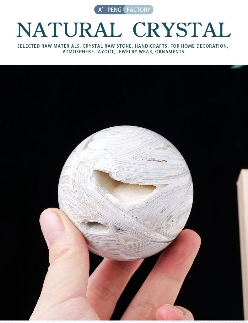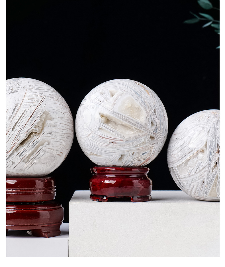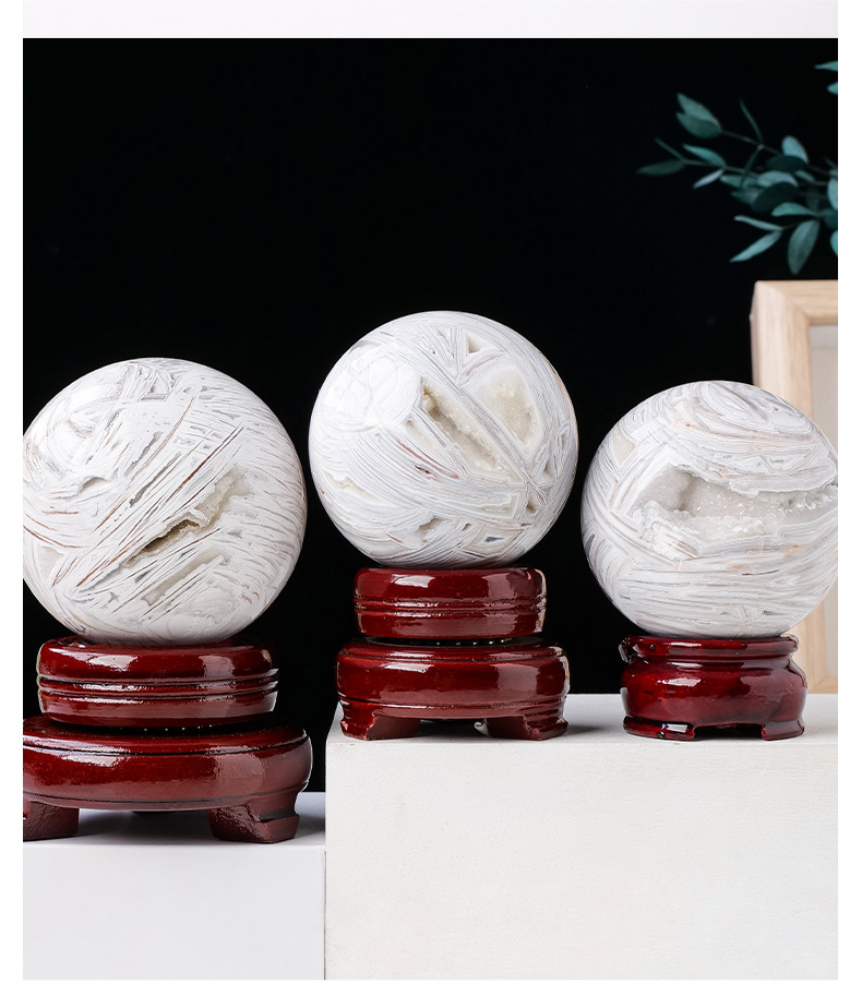 Ornamen hiasan rumah batu akik putih alami, bola kristal batu akik mengkilat batu kristal lubang kristal