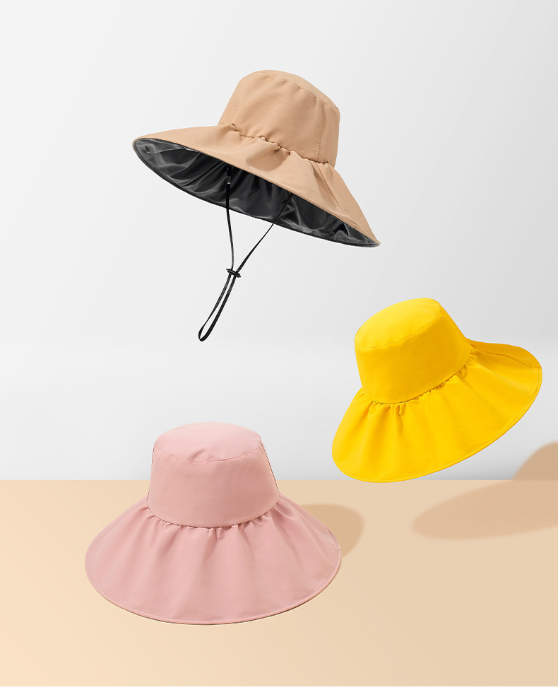 Topi pelindung matahari musim panas berbahan vinil untuk perjalanan luar ruangan, topi matahari yang dapat dilipat dan dibentuk, topi nelayan bertepi lebar untuk wanita, ringan