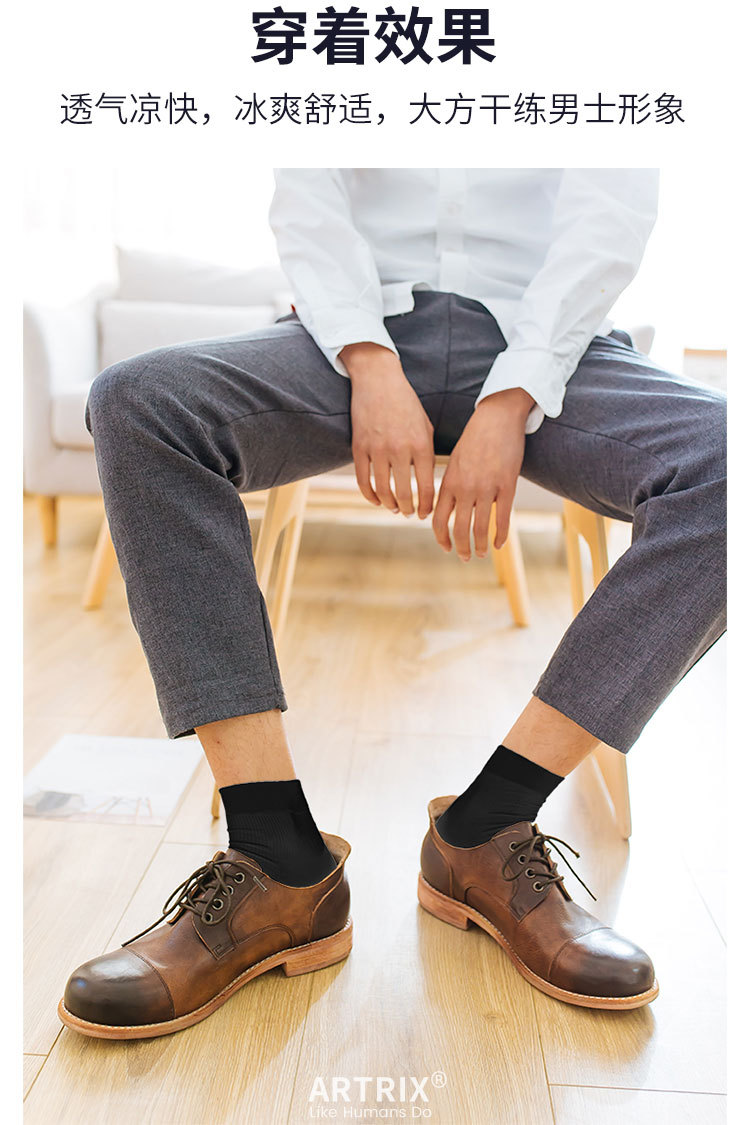 Kaus kaki pria musim panas tipis antilembap, kaus kaki olahraga menyerap keringat setengah betis 9066 hitam musim panas