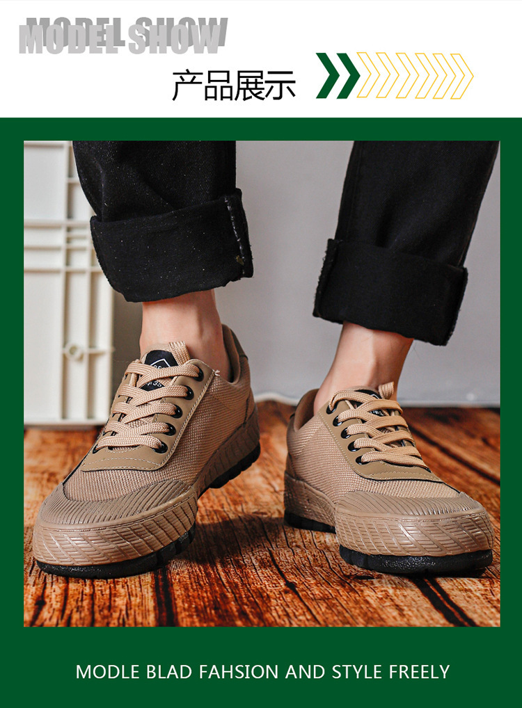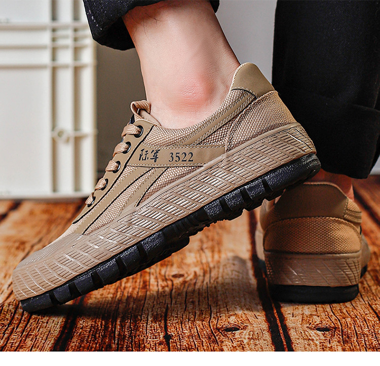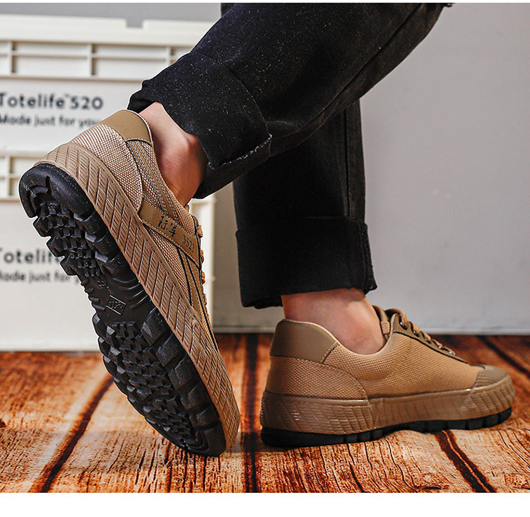 Ji Jun 3522 sepatu perlindungan tenaga kerja antiselip, sepatu konstruksi datar Sol empuk tahan aus untuk pria