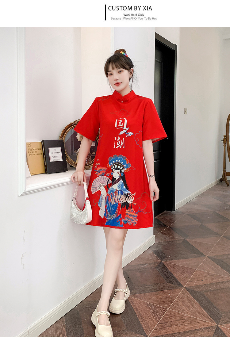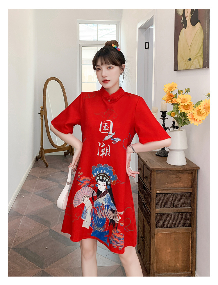 Gaun motif bunga Opera retro gaya Tiongkok gaun cheongsam muda ramping ditingkatkan baru musim panas 2023