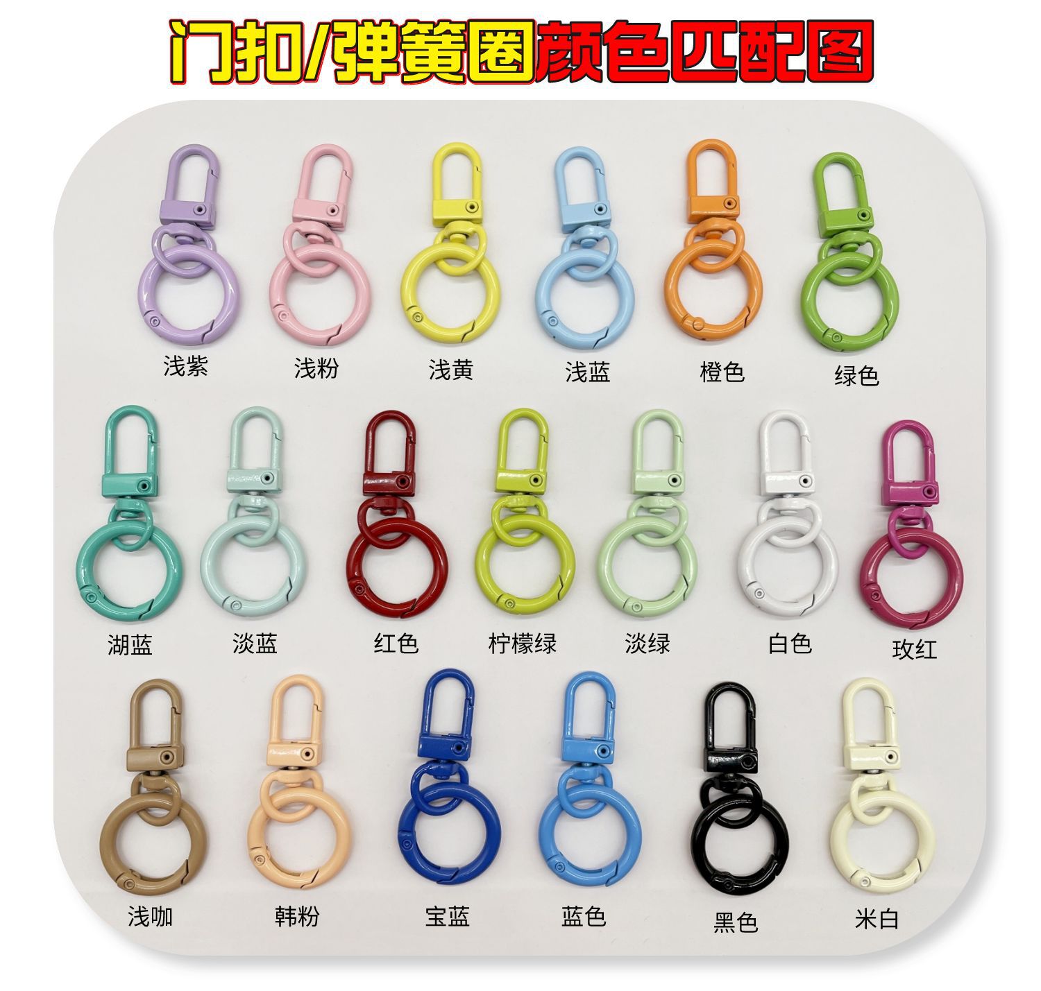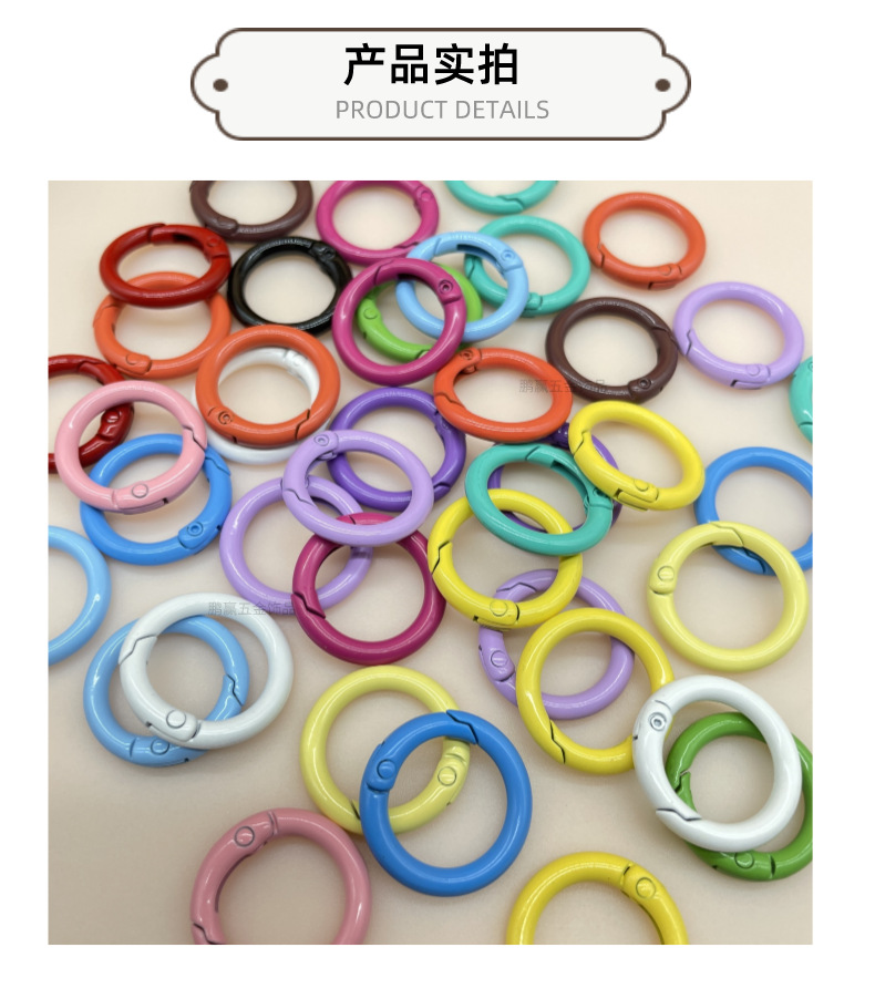 Stok tersedia cat warna paduan seng gesper pegas cincin buku cincin kartu Aksesori gantungan kunci cincin musim semi warna permen terbuka