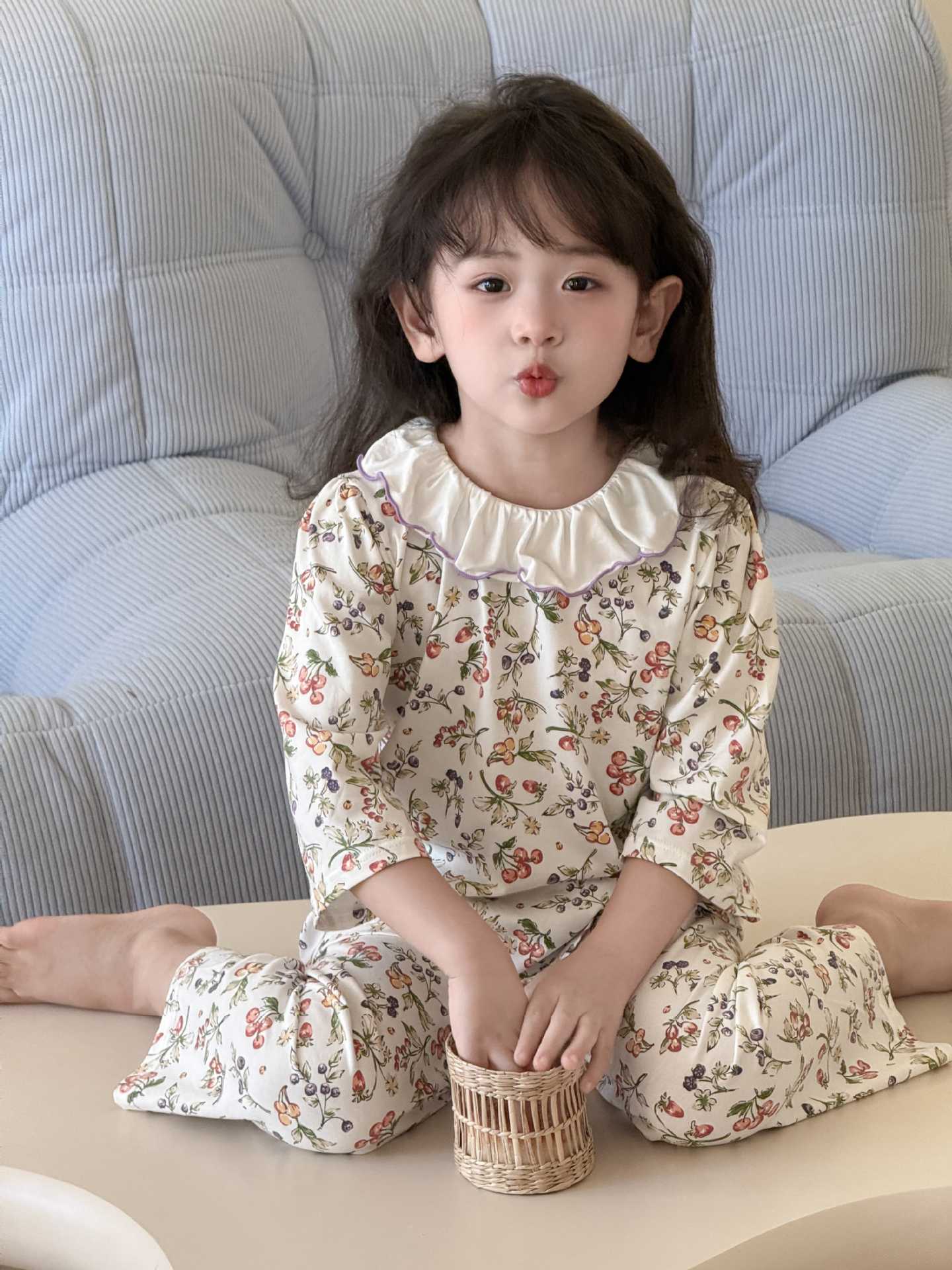 Baju Tidur Anak Perempuan Kerah Renda Renda Kecil Kelas A Pakaian Rumah Anak Perempuan Anak Perempuan Sedang Besar Setelan Pakaian Anak-Anak Gaya Instagram