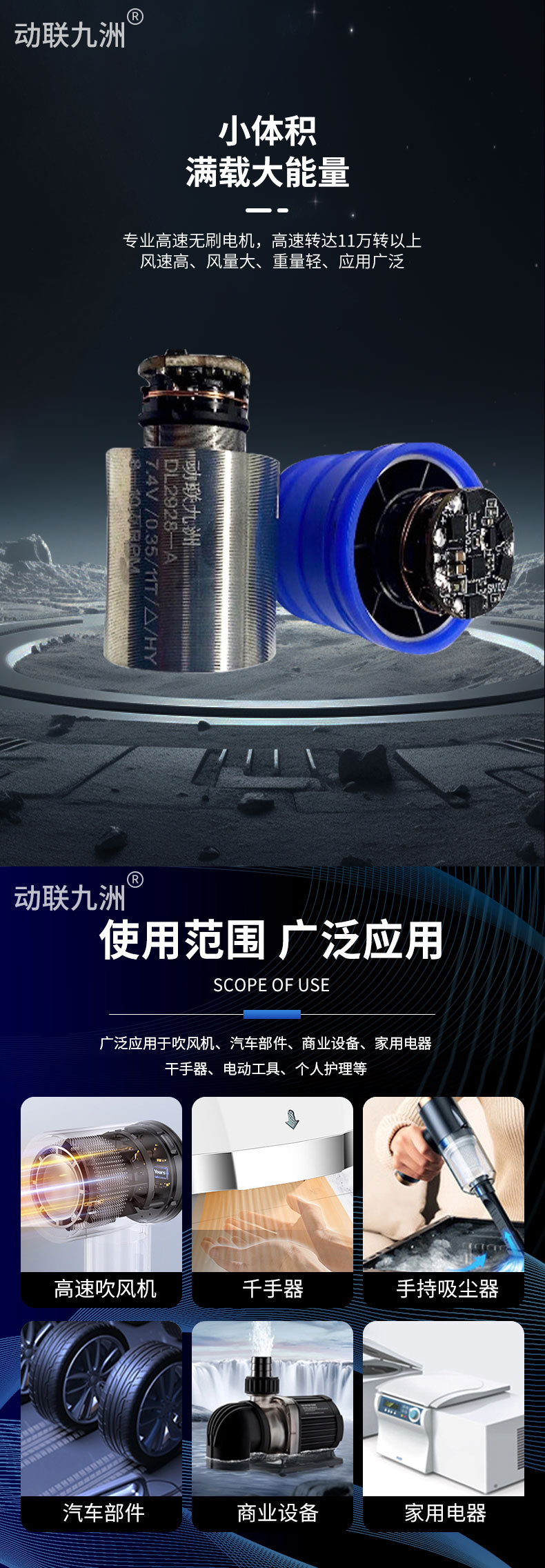 Mobile Union Jiuzhou 7.4V 10-13 juta rpm kecepatan tinggi kekerasan motor motor tekanan angin 120-260g motor