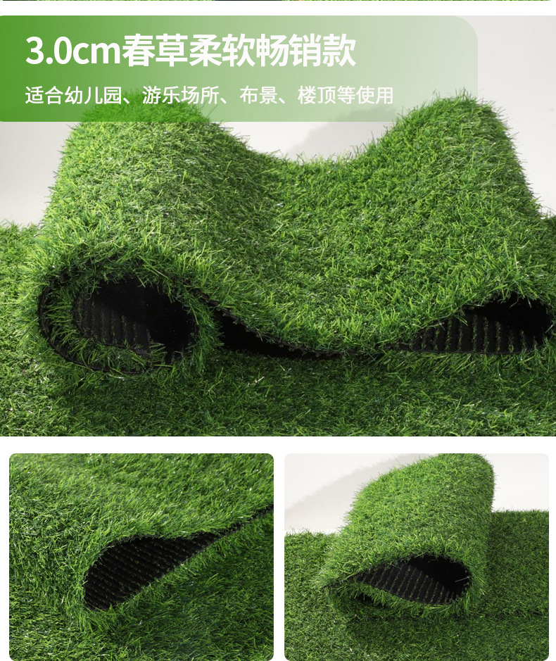 Karpet Rumput Simulasi Buatan Tebal Taman Kanak-Kanak Luar Ruangan Plastik Hijau Lapangan Sepak Bola Rumput Buatan