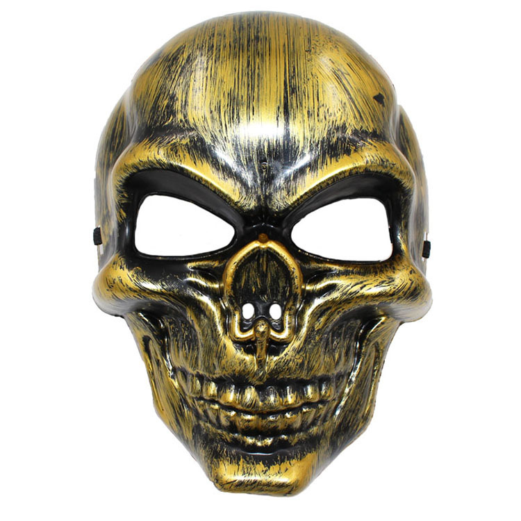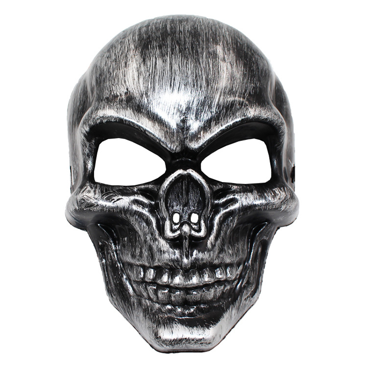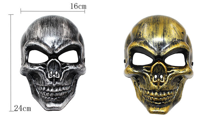 Masker Halloween, topeng kinerja, masker grimace menakutkan, masker tengkorak ajaib, masker wajah penuh, emas, perak