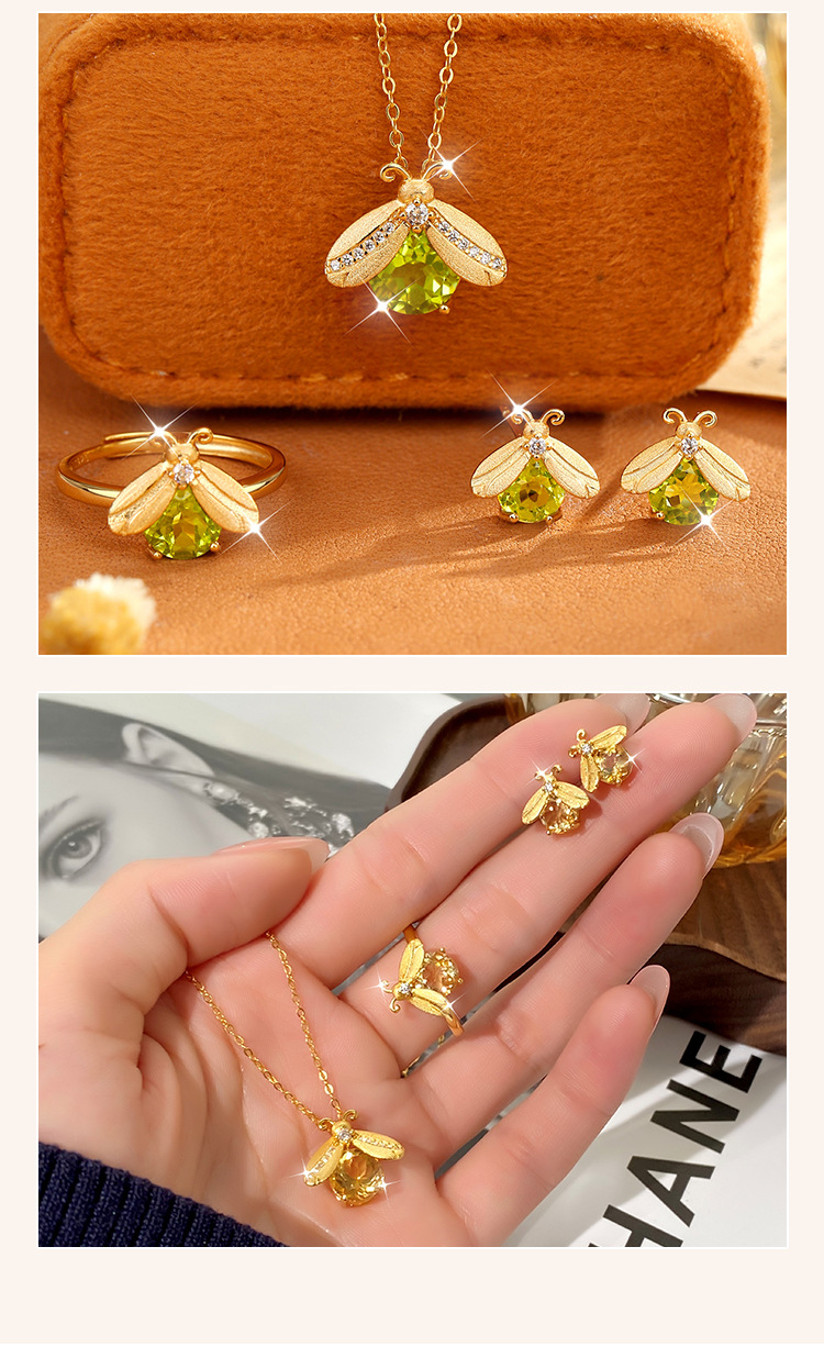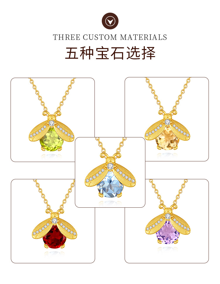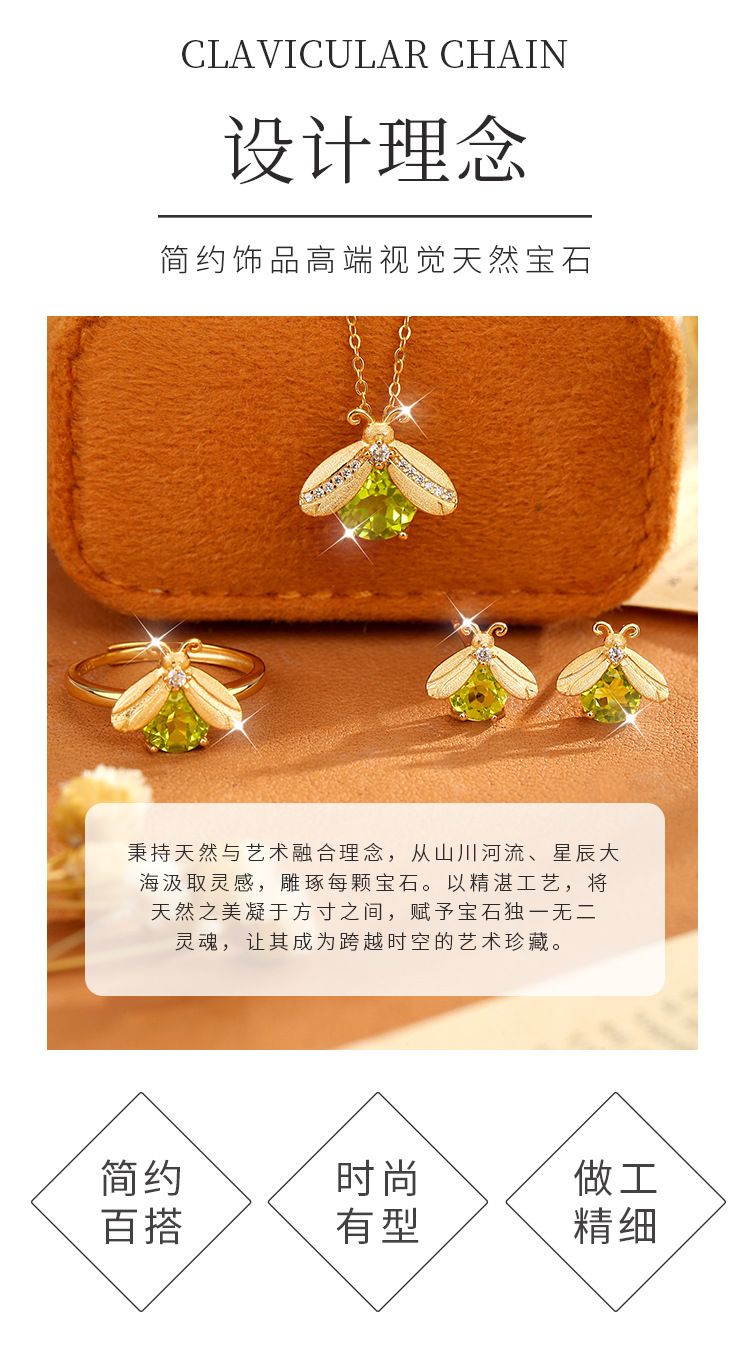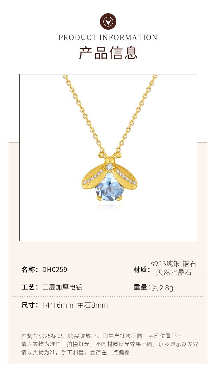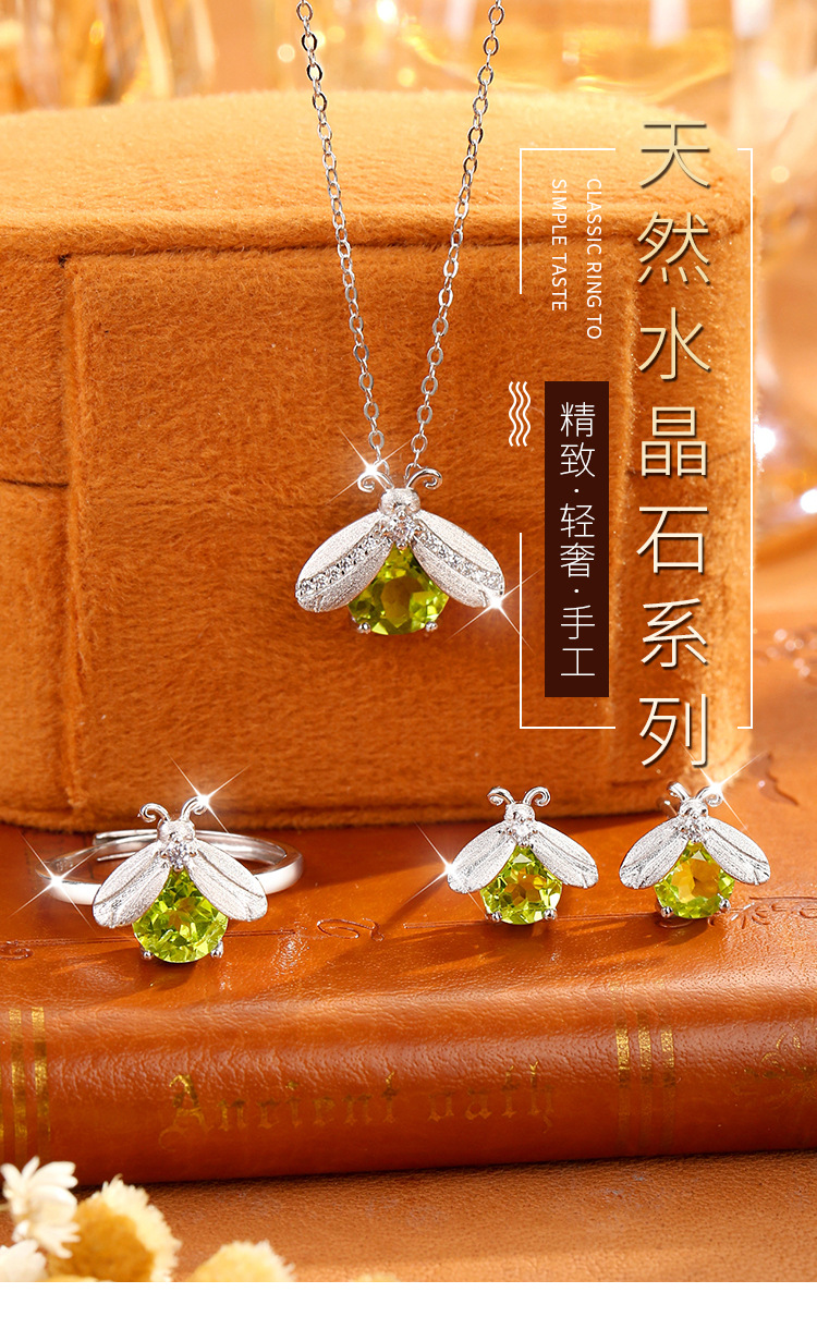Kalung liontin batu kristal alami Firefly full-body perak s925 untuk wanita, liontin batu permata potongan floral mewah dengan lapisan brushed
