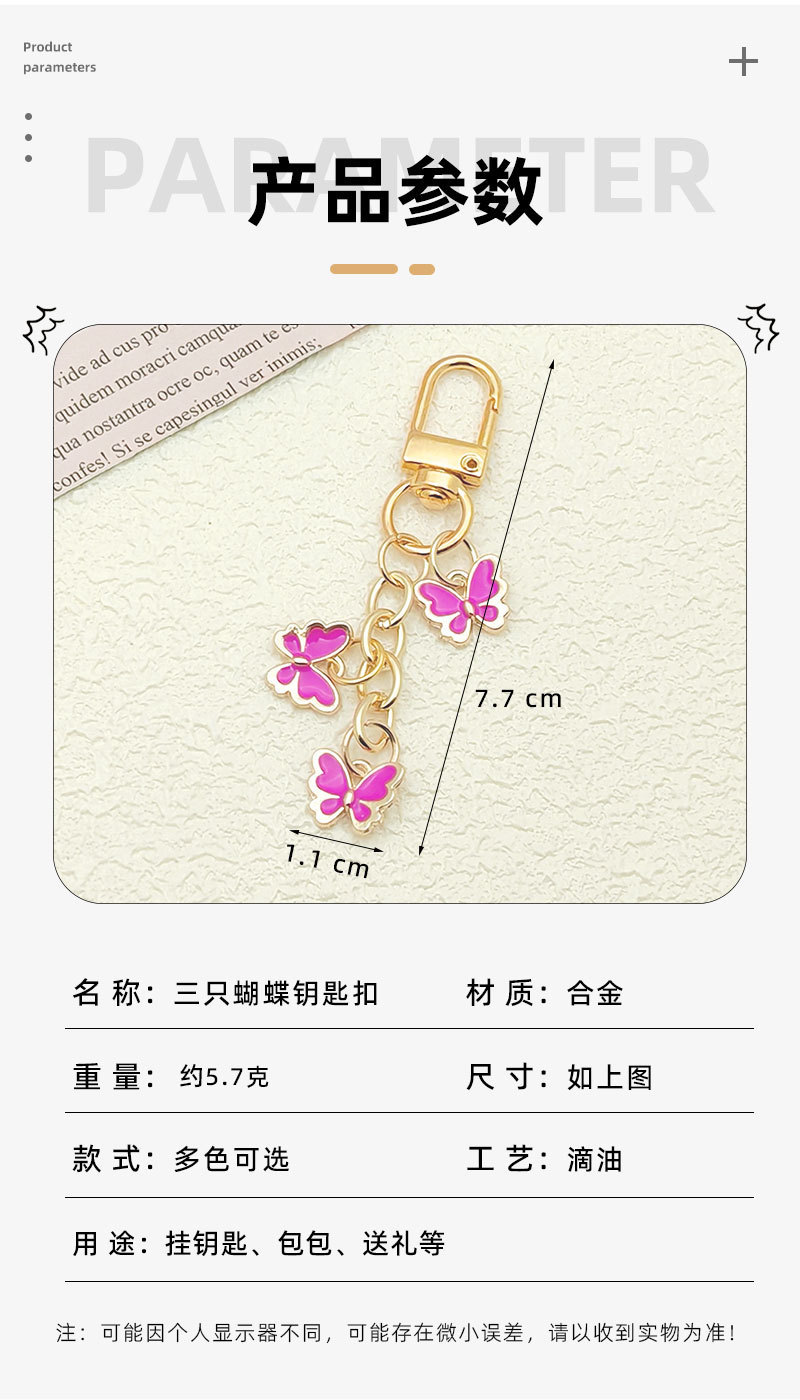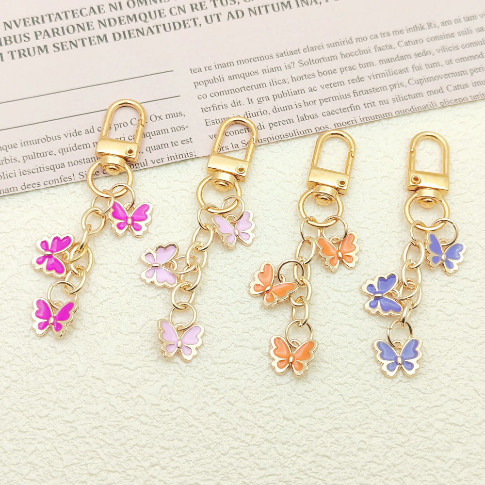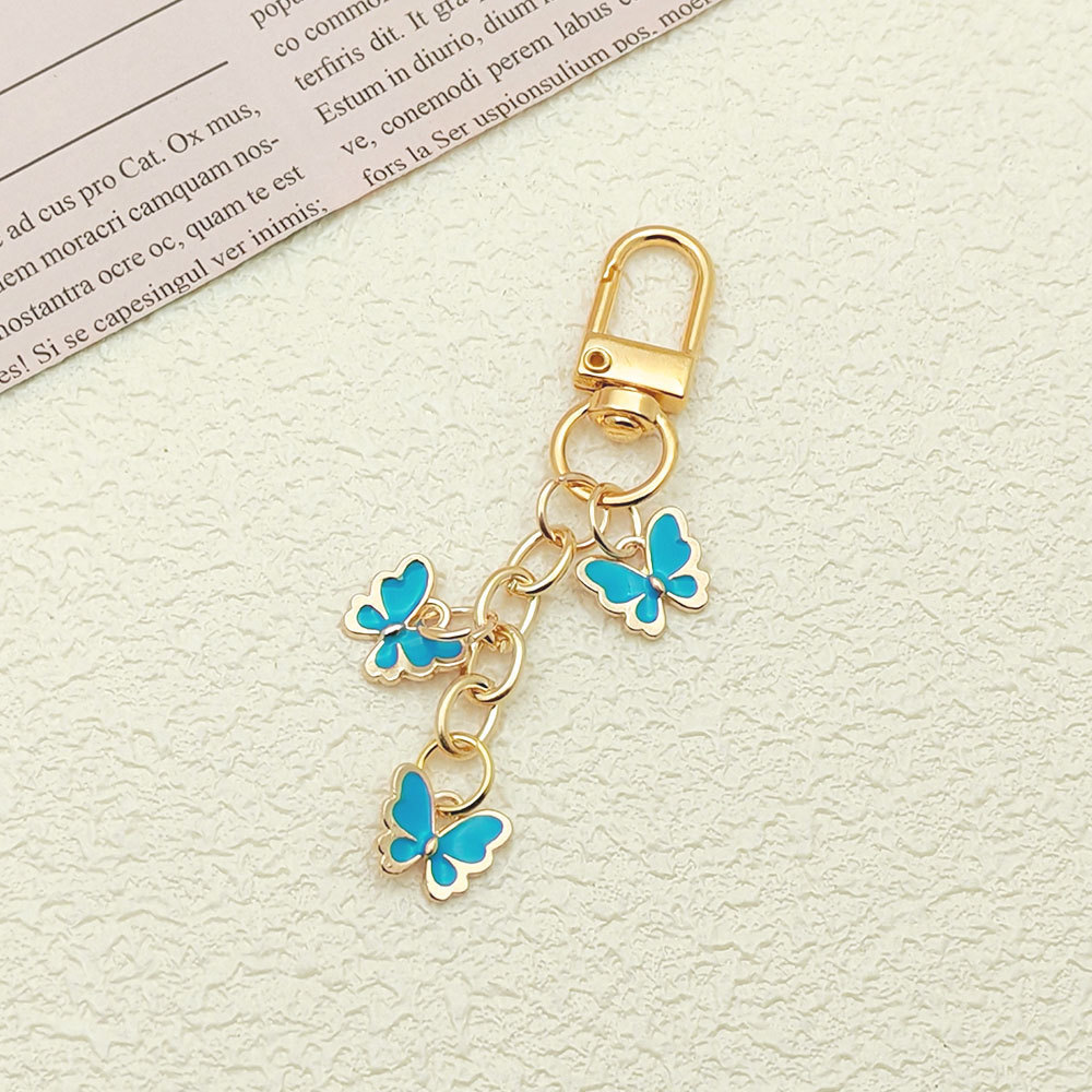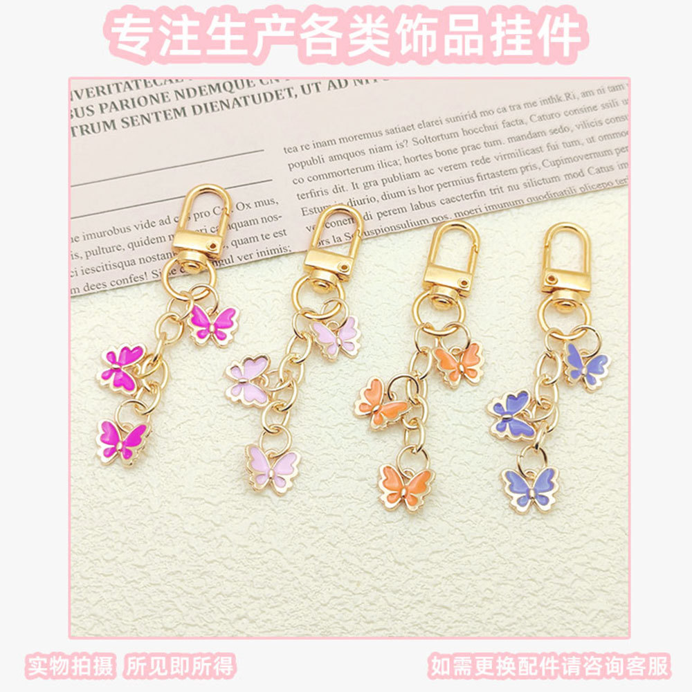 跨境新款ins彩色蝴蝶滴油钥匙扣挂件创意diy合金耳机套包包装饰品
