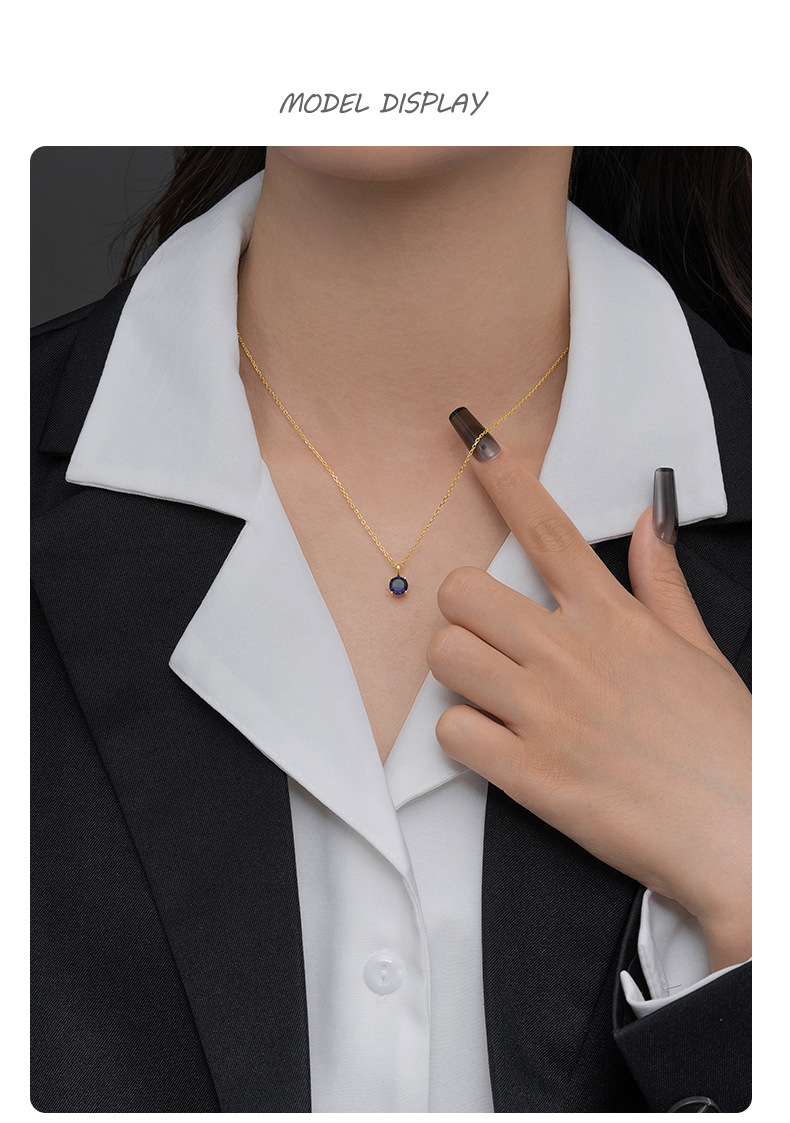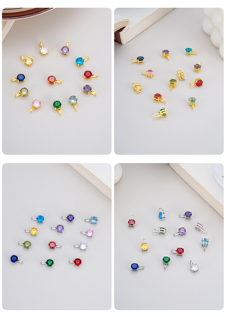 Kalung perak wanita model Korea empat cakar dengan satu berlian, serbaguna, perak sterling 925, dua belas batu kelahiran, liontin zodiak keberuntungan, grosir DIY
