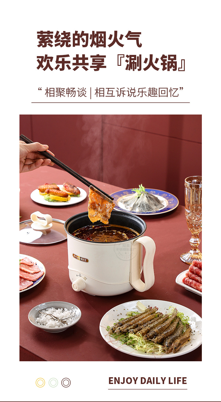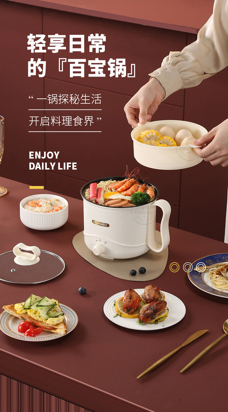Pemasak elektrik Mini multifungsi, panci tanpa lengket terintegrasi untuk rumah siswa pintar