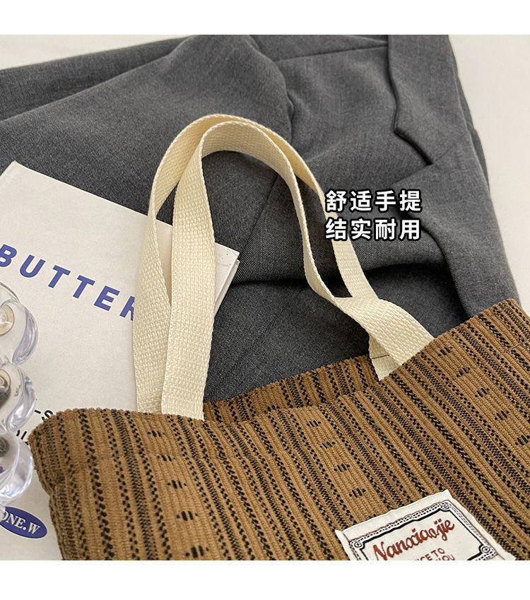 ins帆布包包女2024新款韩版休闲条纹手提包大容量上课通勤单肩包