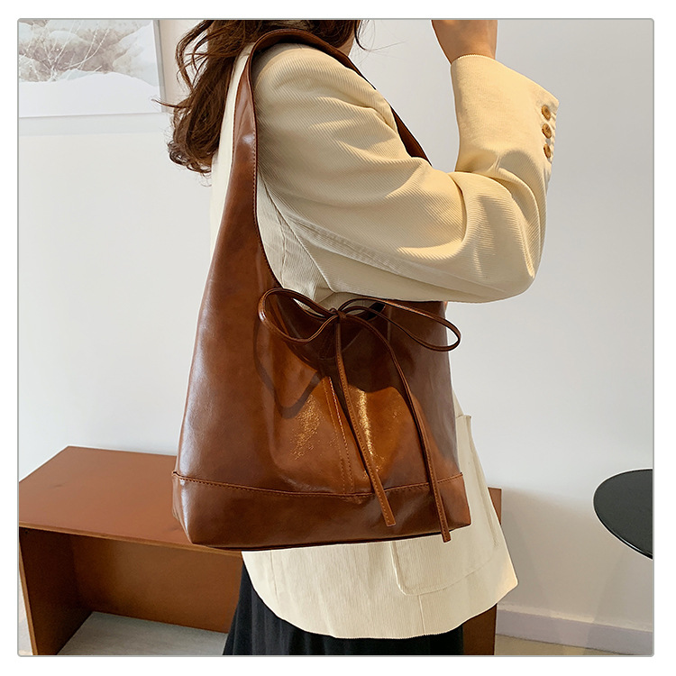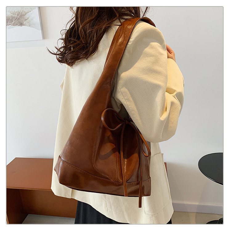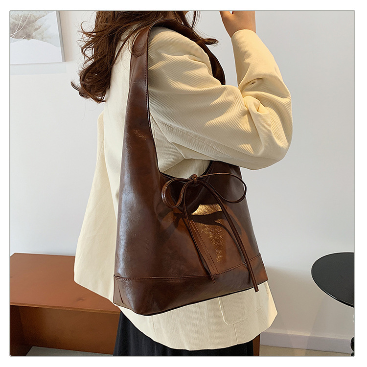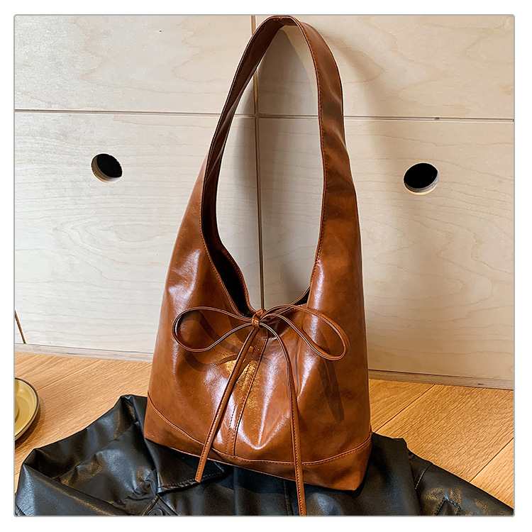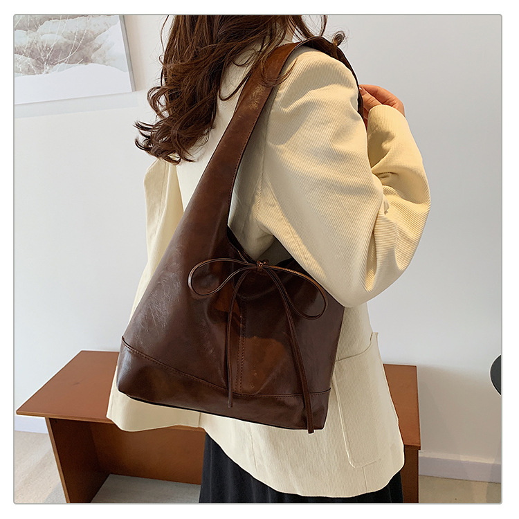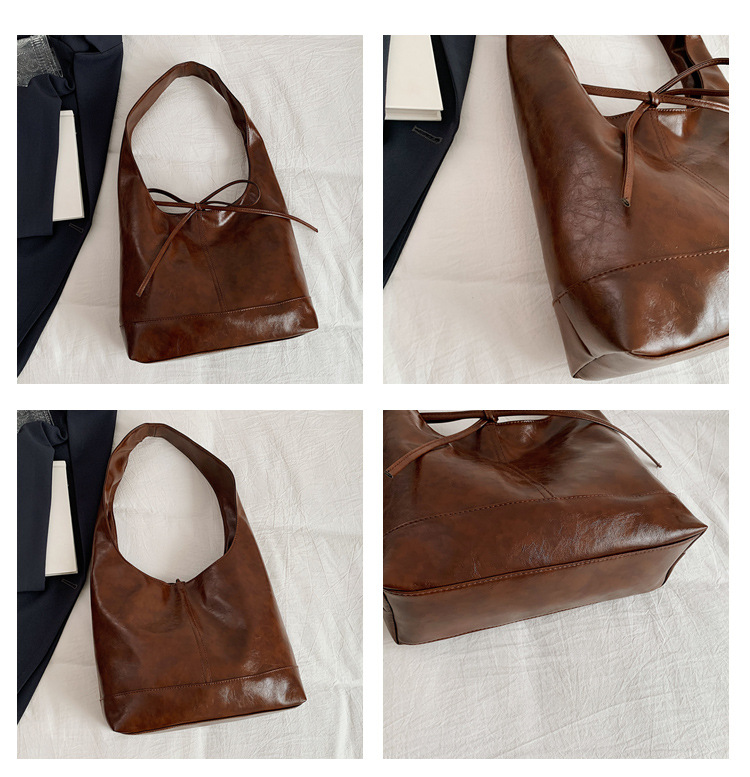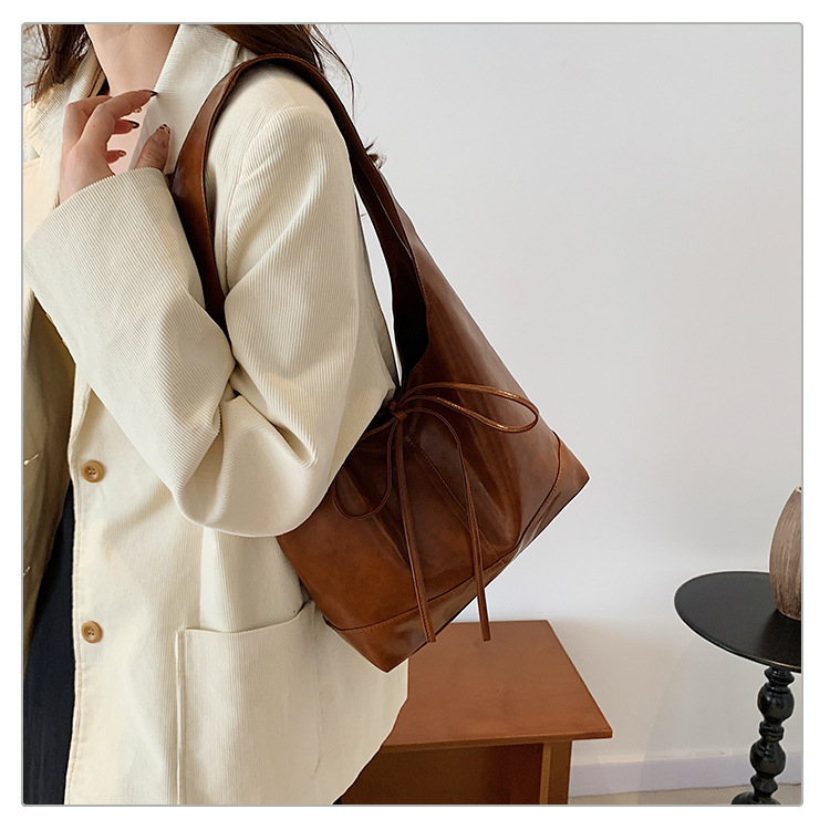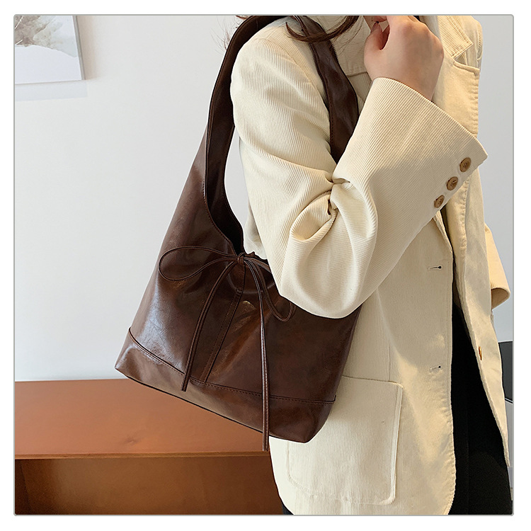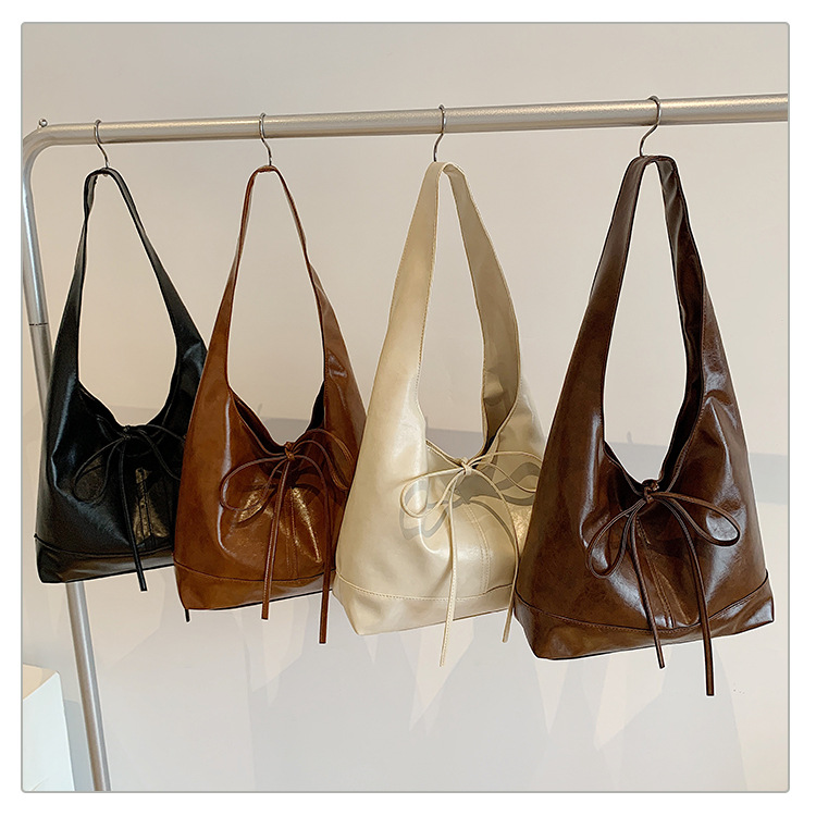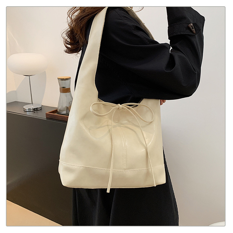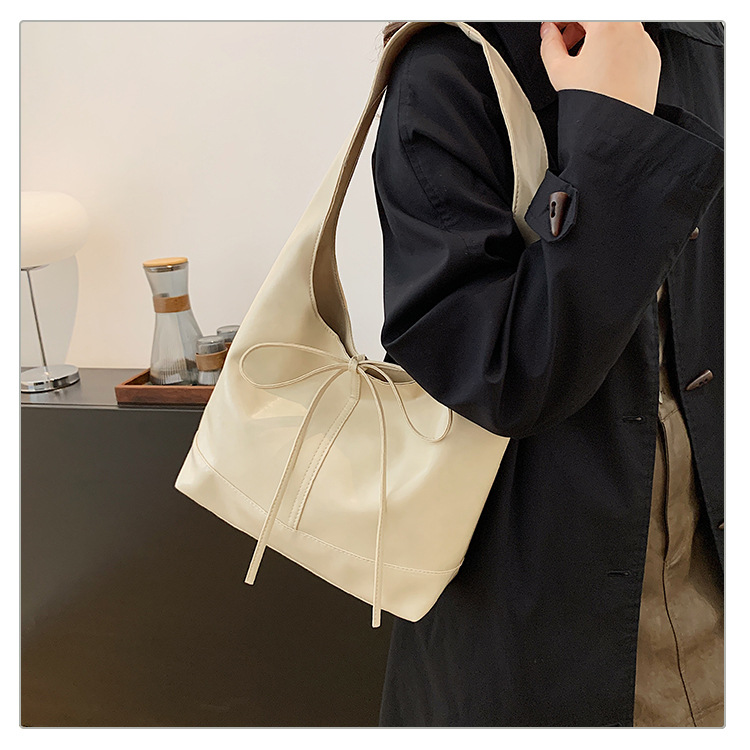 2024 Tas Wanita Komuter Niche Versi Korea Tas Kasual Mudah Dipadu Padan Pita Kupu-Kupu Gaya Prancis Tas Tote Bawah Ketiak Bahu Tunggal Kapasitas Besar