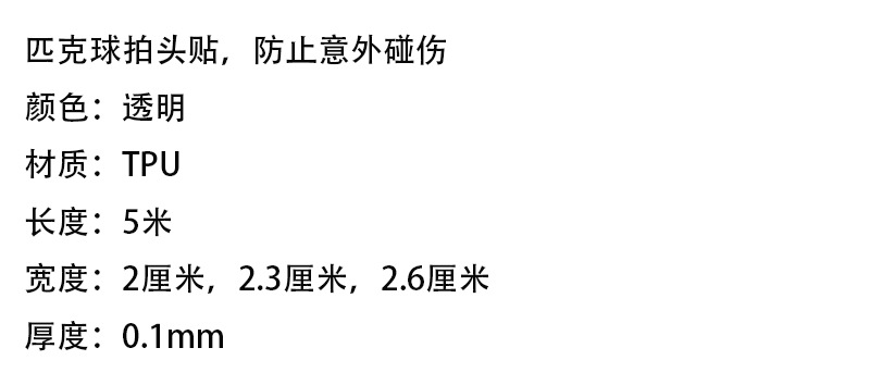 5米透明匹克球拍拍头贴保护条拍边框拍带防磨防刮花防掉漆全包边