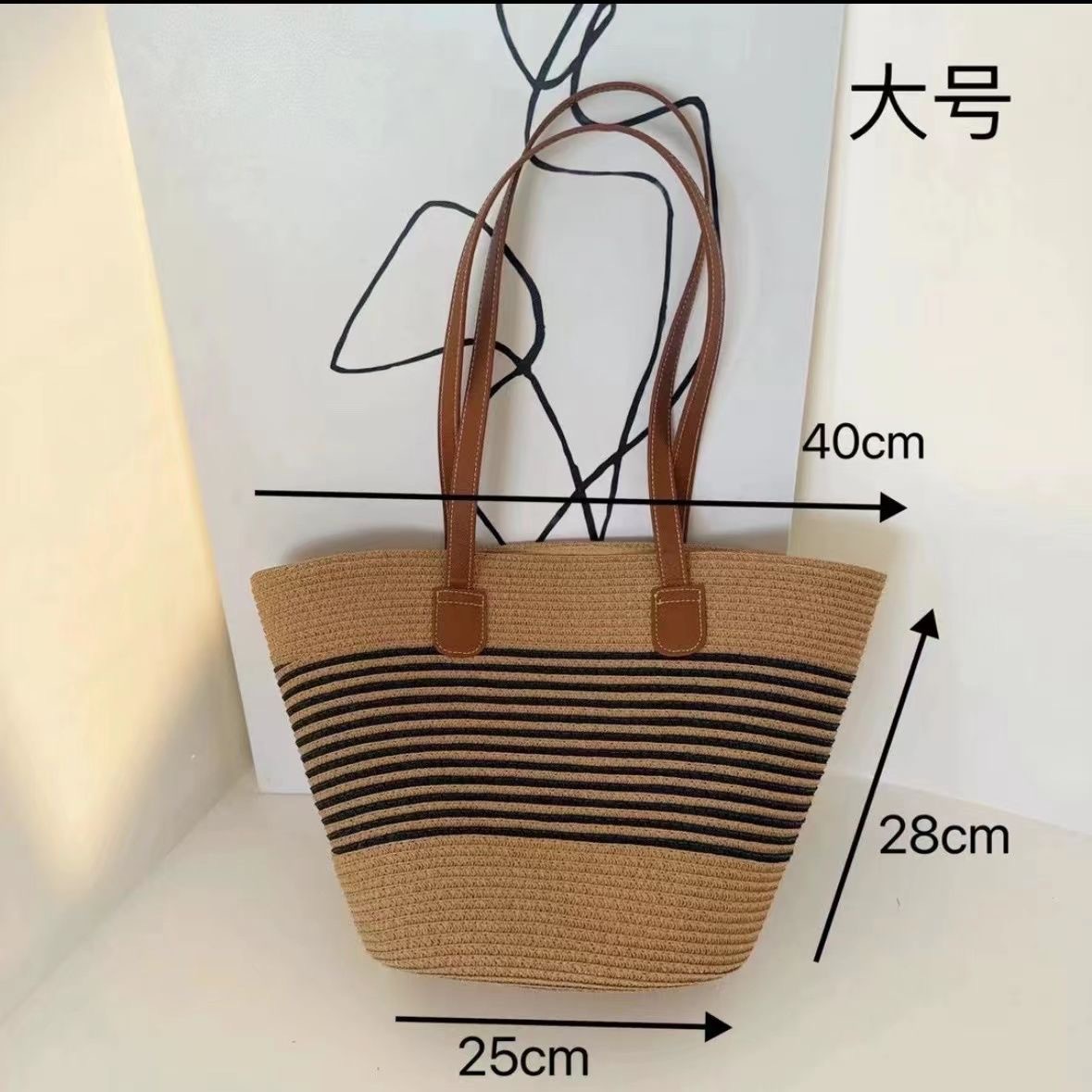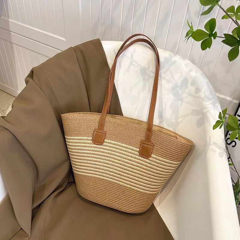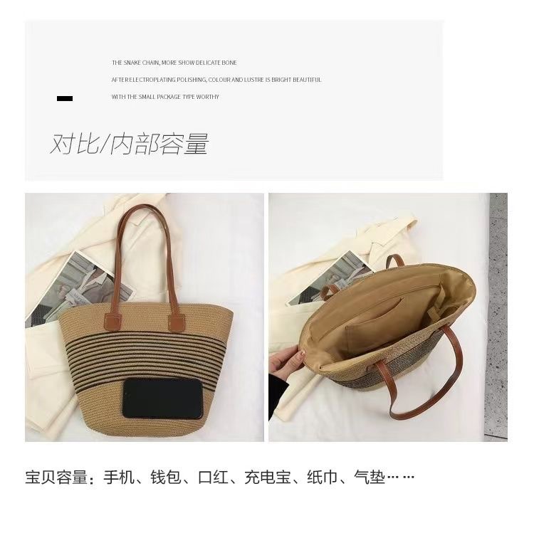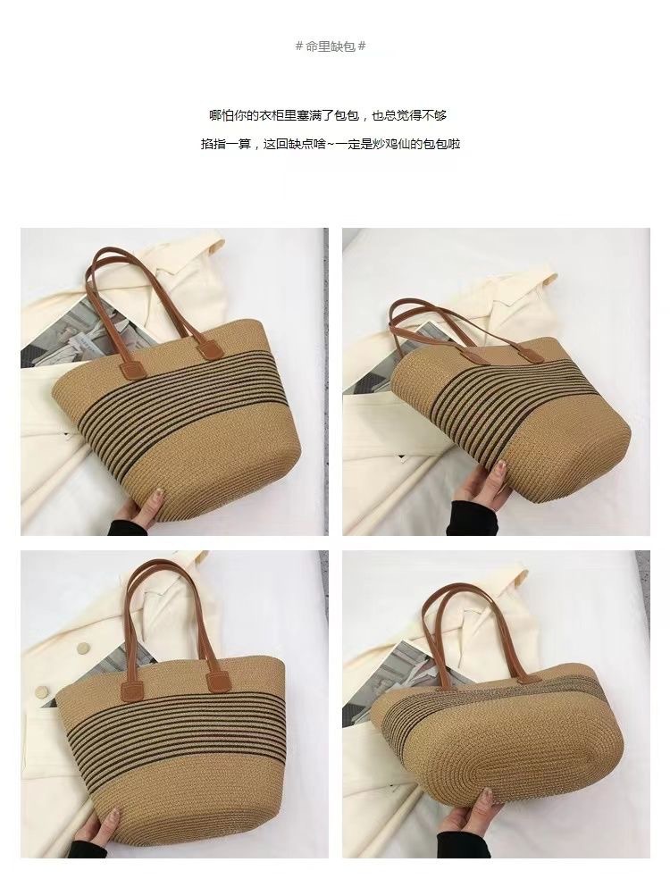 Tas Jerami Bergaris Hitam Pantai Model Baru 2025 Tas Bahu Tunggal Kasual Musim Panas Modis Tas Selempang Tas Ransel Wanita